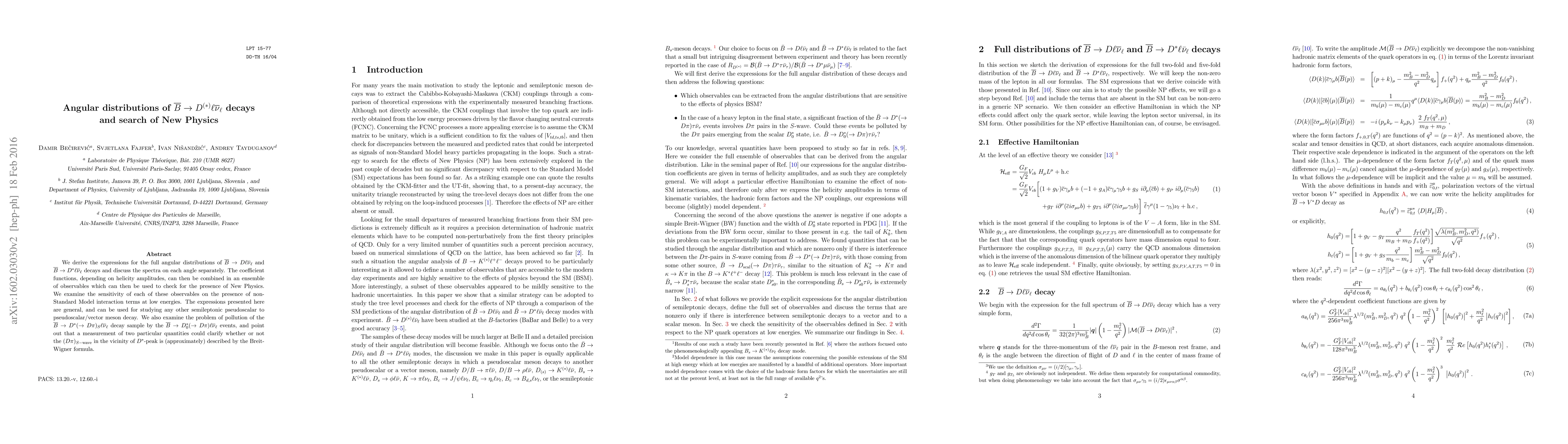 This paper derives expressions for angular distributions in $\bar B \to D^{(\ast)}\ell\bar \nu_\ell$ decays to search for New Physics, examining sensitivity to non-Standard Model interactions. It also addresses the issue of decay sample contamination and suggests specific measurements to clarify the $(D\pi)_{S-\rm wave}$ description.