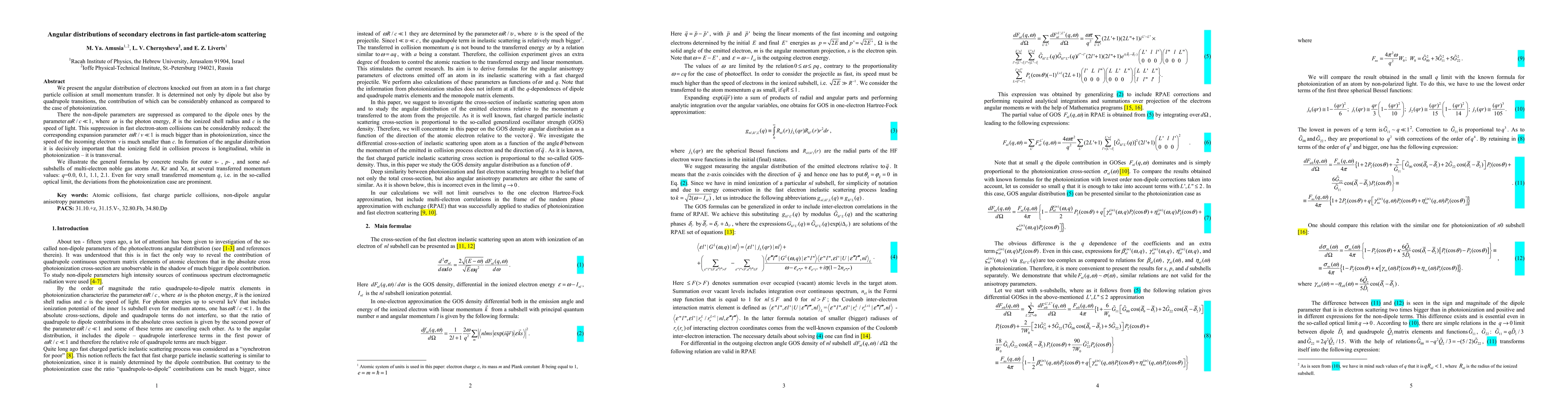 This paper investigates the angular distribution of secondary electrons ejected during fast charge particle collisions with atoms, highlighting the significant contributions from quadrupole transitions. Unlike photoionization, where non-dipole effects are suppressed, these transitions are enhanced in fast collisions due to the larger expansion parameter, leading to notable deviations from photoionization patterns even at small momentum transfers.