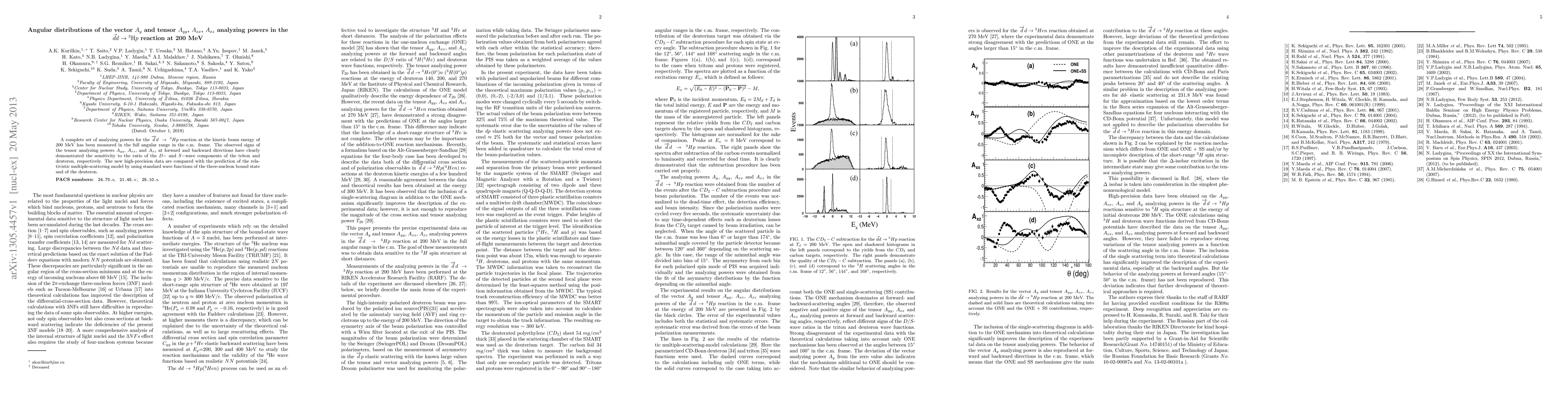 A complete set of analyzing powers for the dd->3Hp reaction at the kinetic beam energy of 200 MeV has been measured in the full angular range in the c.m. frame. The observed signs of the tensor analyzing powers Ayy, Axx, and Axz at forward and backward directions have clearly demonstrated the sensitivity to the ratio of the D- and S-wave components of the triton and deuteron, respectively. The new high-precision data are compared with the prediction of the relativistic multiple-scattering model by using standard wave functions of the three-nucleon bound state and of the deuteron.