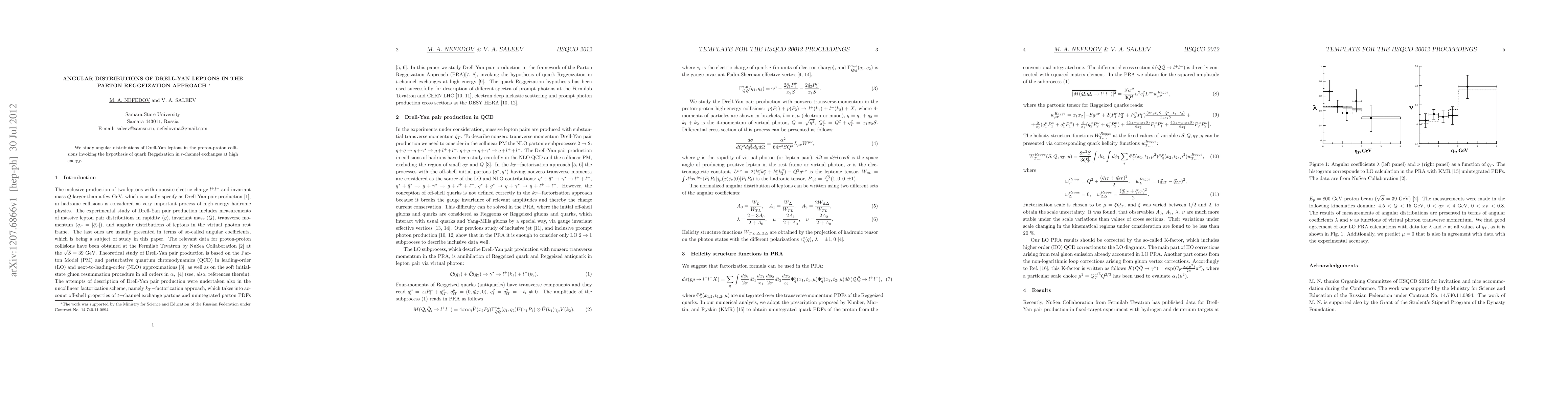 Summary: This paper investigates the angular distributions of Drell-Yan leptons in proton-proton collisions, utilizing the quark Reggeization hypothesis in t-channel exchanges at high energies to understand parton interactions.