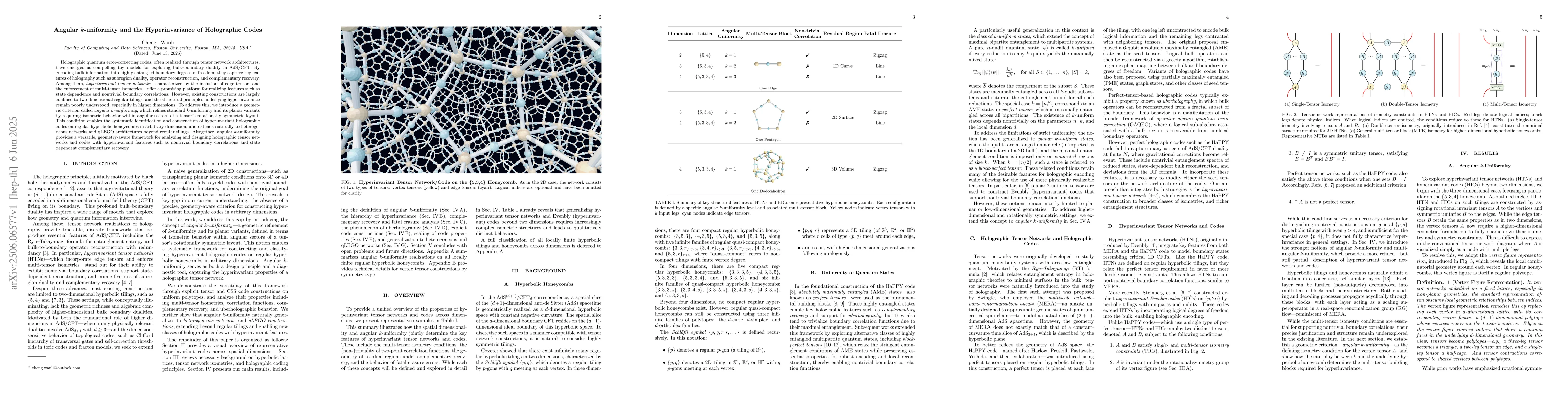 This paper introduces angular k-uniformity as a geometric criterion for designing hyperinvariant holographic codes, enabling the construction of tensor networks with nontrivial boundary correlations in arbitrary dimensions.