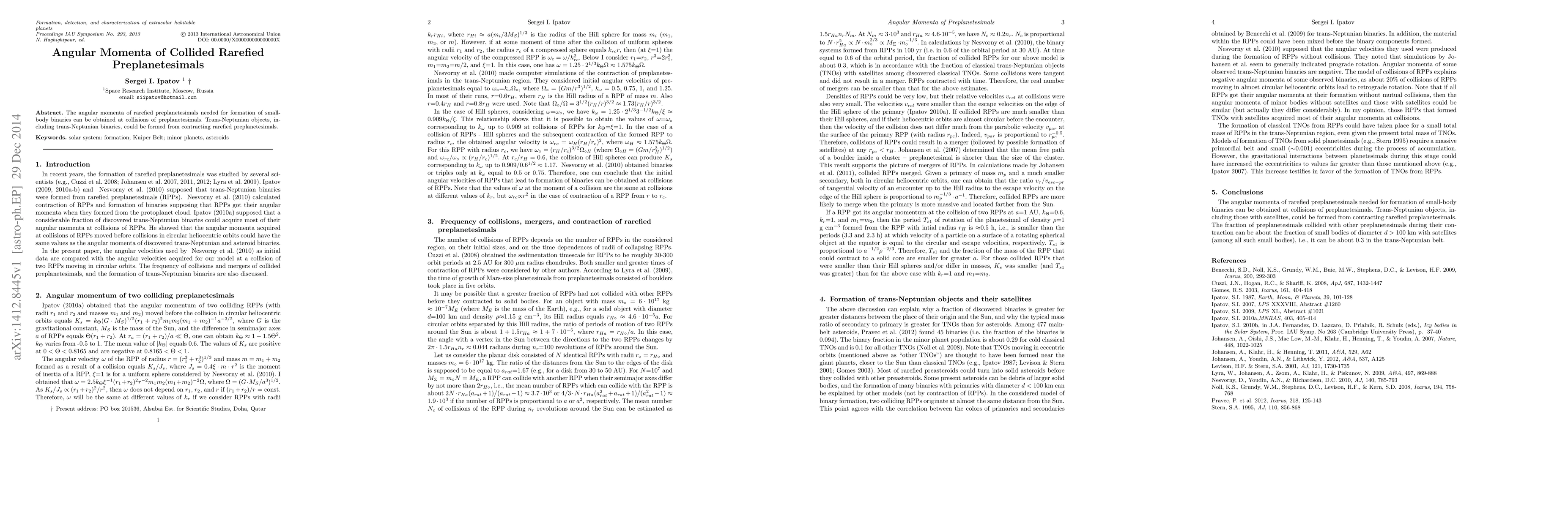 The angular momenta of rarefied preplanetesimals needed for formation of small-body binaries can be obtained at collisions of preplanetesimals. Trans-Neptunian objects, including trans-Neptunian binaries, could be formed from contracting rarefied preplanetesimals.