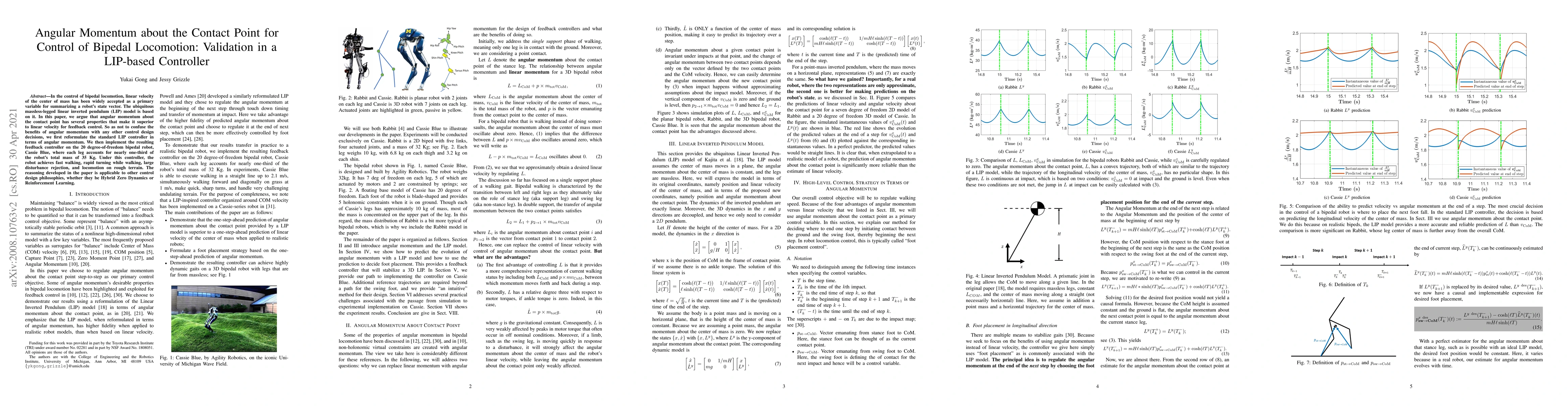 A new controller for bipedal locomotion uses angular momentum about the contact point instead of linear velocity, achieving fast walking, rapid turning, and improved disturbance rejection on a 35kg robot.