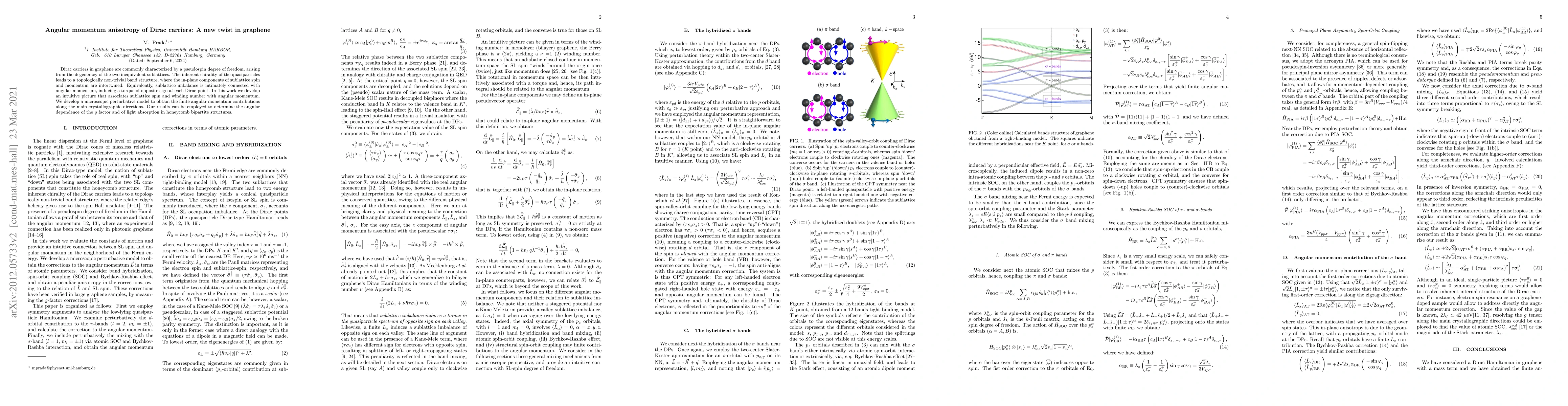 Dirac carriers in graphene are commonly characterized by a pseudospin degree of freedom, arising from the degeneracy of the two inequivalent sublattices. The inherent chirality of the quasiparticles leads to a topologically non-trivial band structure, where the in-plane component of sublattice spin and momentum are intertwined. Equivalently, sublattice imbalance is intimately connected with angular momentum, inducing a torque of opposite sign at each Dirac point. In this work we develop an intuitive picture that associates sublattice spin and winding number with angular momentum. We develop a microscopic perturbative model to obtain the finite angular momentum contributions along the main crystallographic directions. Our results can be employed to determine the angular dependence of the g-factor and of light absorption in honeycomb bipartite structures.