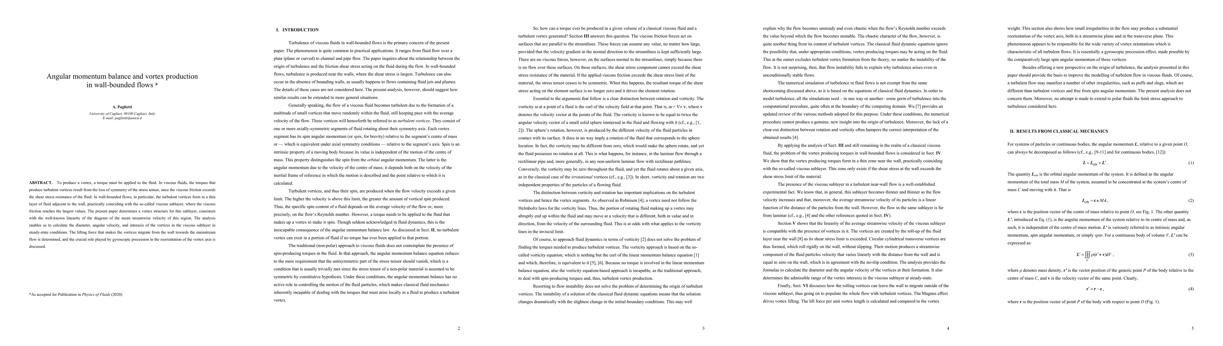 This paper investigates the angular momentum balance and vortex production in wall-bounded flows, focusing on the formation of turbulent vortices in the viscous sublayer. It determines the vortex structure, calculates their diameter, angular velocity, and interaxis, and discusses the role of gyroscopic precession in vortex reorientation.