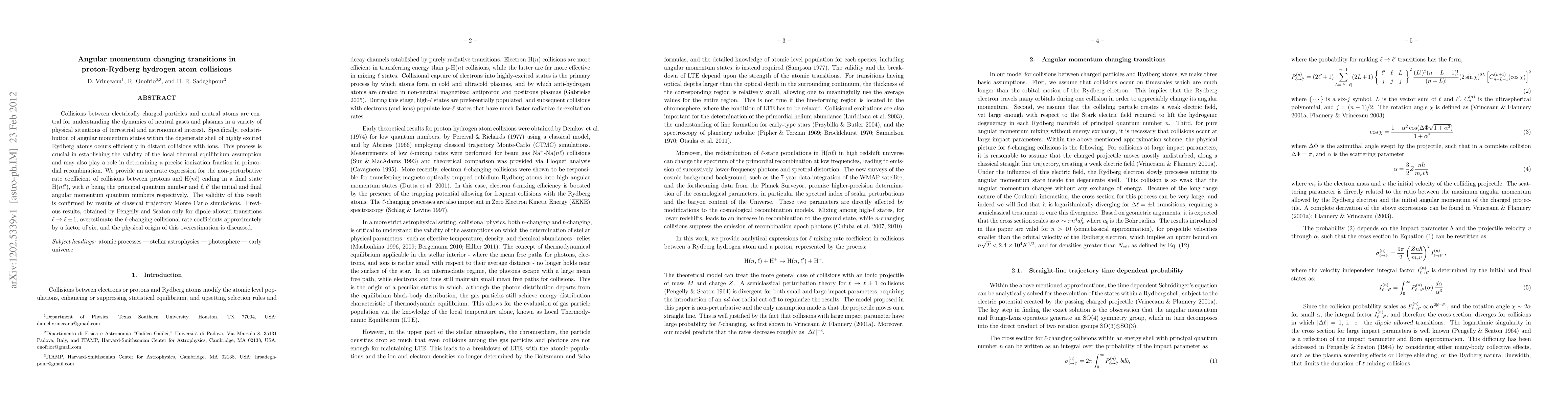 Collisions between electrically charged particles and neutral atoms are central for understanding the dynamics of neutral gases and plasmas in a variety of physical situaziones of terrestrial and astronomical interest. Specifically, redistribution of angular momentum states within the degenerate shell of highly excited Rydberg atoms occurs efficiently in distant collisions with ions. This process is crucial in establishing the validity of the local thermal equilibrium assumption and may also play a role in determining a precise ionization fraction in primordial recombination. We provide an accurate expression for the non-perturbative rate coefficient of collsions between protons and H(n_l) ending in a final state H(n_l'), with n being the principal quantum number and l,l' the initial and final angular momentum quantum numbers, respectively. The validity of this result is confirmed by results of classical trajectory Monte Carlo simulations. Previous results, obtained by Pengelly and Seaton only for dipole-allowed transitions, l--->l+-1, overestimate the l-changing collisional rate approximately by a factor of six, and the physical origin of this overestimation is discussed.