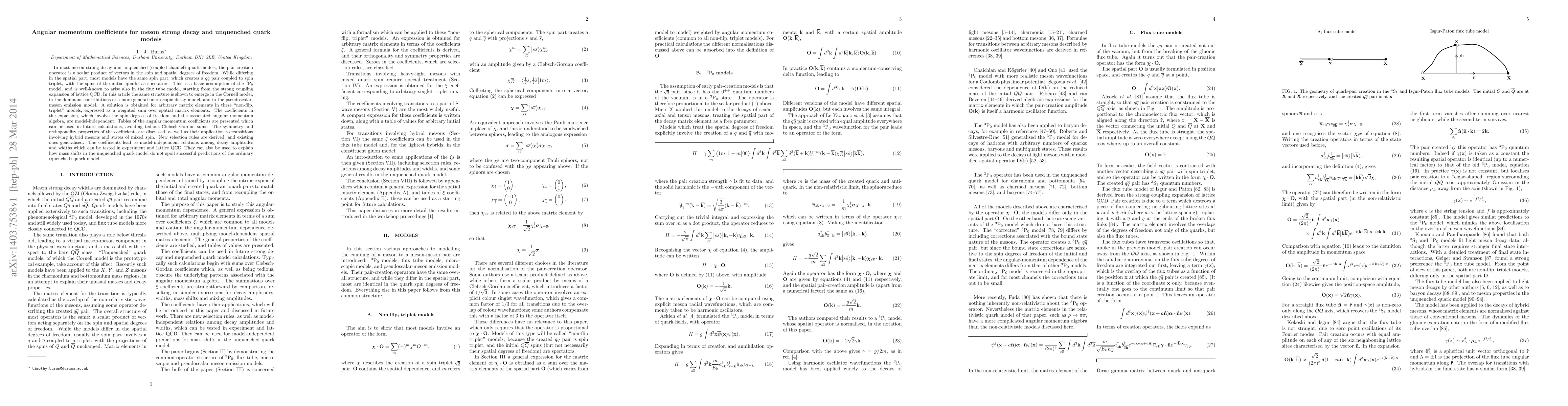 This paper derives angular momentum coefficients for meson strong decay in unquenched quark models, showing their emergence in various models like the Cornell model and the 3P0 model. These coefficients provide model-independent relations among decay amplitudes and widths, facilitating future calculations and experimental tests.