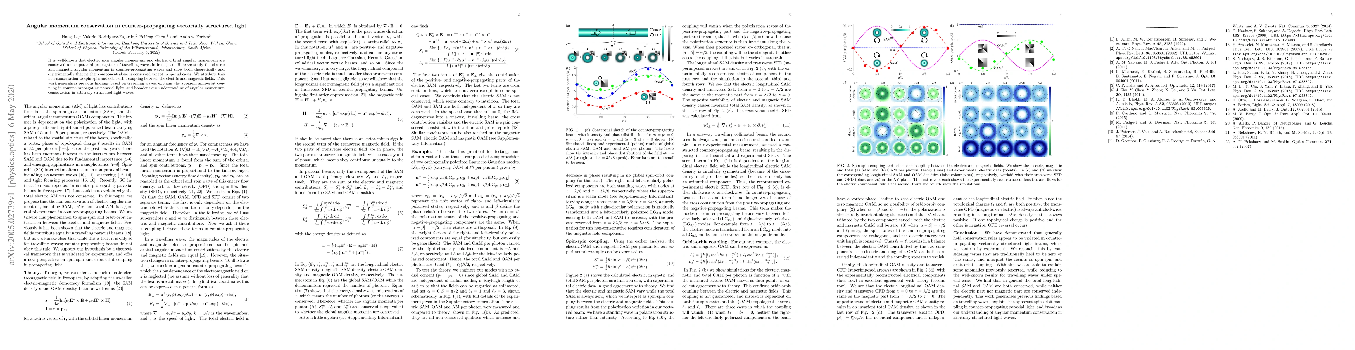 This paper investigates the conservation of angular momentum in counter-propagating vectorially structured light, demonstrating theoretically and experimentally that neither electric nor magnetic angular momentum alone is conserved due to spin-spin and orbit-orbit coupling. This generalizes prior findings on travelling waves and enhances our understanding of angular momentum conservation in structured light.