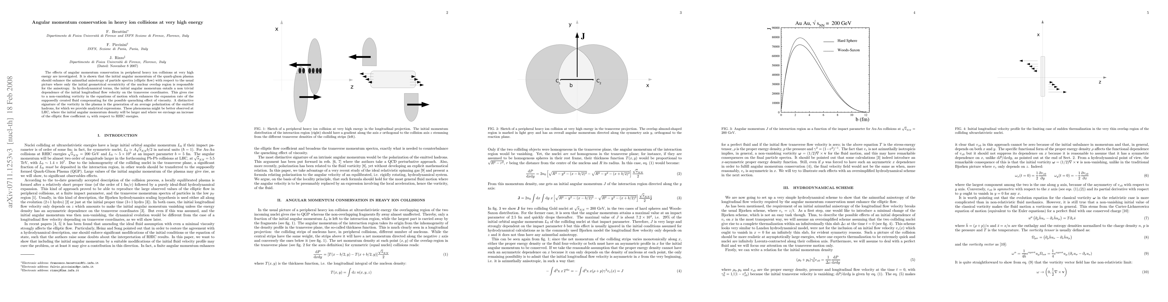 The effects of angular momentum conservation in peripheral heavy ion collisions at very high energy are investigated. It is shown that the initial angular momentum of the quark-gluon plasma should enhance the azimuthal anisotropy of particle spectra (elliptic flow) with respect to the usual picture where only the initial geometrical eccentricity of the nuclear overlap region is responsible for the anisotropy. In hydrodynamical terms, the initial angular momentum entails a non trivial dependence of the initial longitudinal flow velocity on the transverse coordinates. This gives rise to a non-vanishing vorticity in the equations of motion which enhances the expansion rate of the supposedly created fluid compensating for the possible quenching effect of viscosity. A distinctive signature of the vorticity in the plasma is the generation of an average polarization of the emitted hadrons, for which we provide analytical expressions. These phenomena might be better observed at LHC, where the initial angular momentum density will be larger and where we envisage an increase of the elliptic flow coefficient v_2 with respect to RHIC energies.