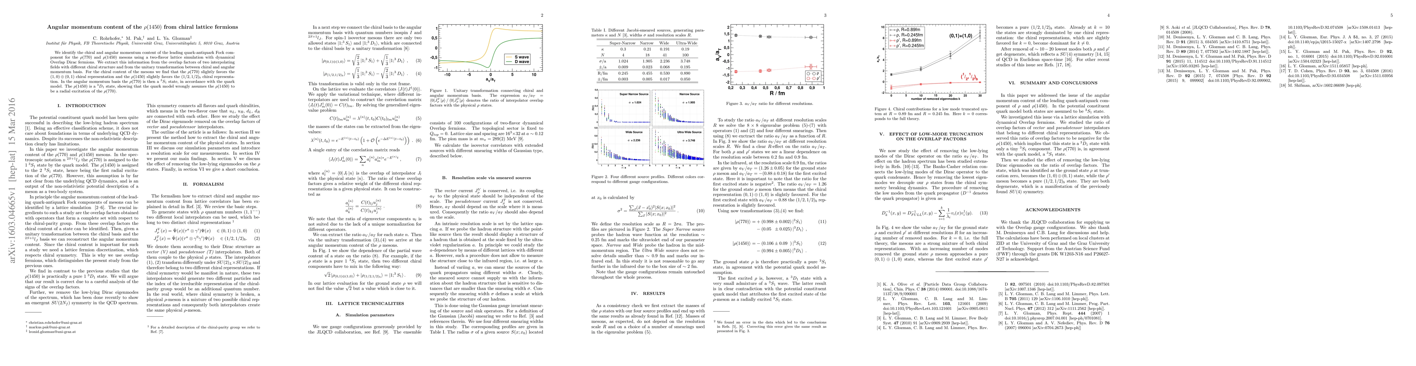 This study uses lattice simulations with dynamical Overlap Dirac fermions to determine the chiral and angular momentum content of the $\rho(770)$ and $\rho(1450)$ mesons. The $\rho(1450)$ is found to be a $^3D_1$ state, contradicting the quark model's assumption that it is a radial excitation of the $\rho(770)$.