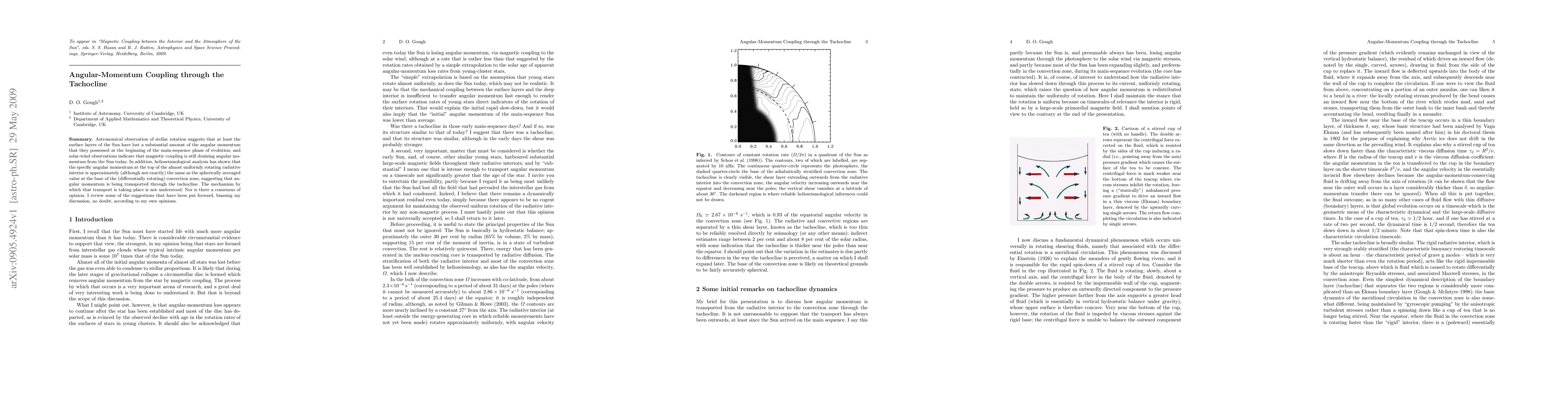 Astronomical observation of stellar rotation suggests that at least the surface layers of the Sun have lost a substantial amount of the angular momentum that they possessed at the beginning of the main-sequence phase of evolution; and solar-wind observations indicate that magnetic coupling is still draining angular momentum from the Sun today. In addition, helioseismological analysis has shown that the specific angular momentum at the top of the almost uniformly rotating radiative interior is approximately (although not exactly) the same as the spherically averaged value at the base of the (differentially rotating) convection zone, suggesting that angular momentum is being transported through the tachocline. The mechanism by which that transport is taking place is not understood. Nor is there a consensus of opinion. I review some of the suggestions that have been put forward, biassing my discussion, no doubt, according to my own opinions.