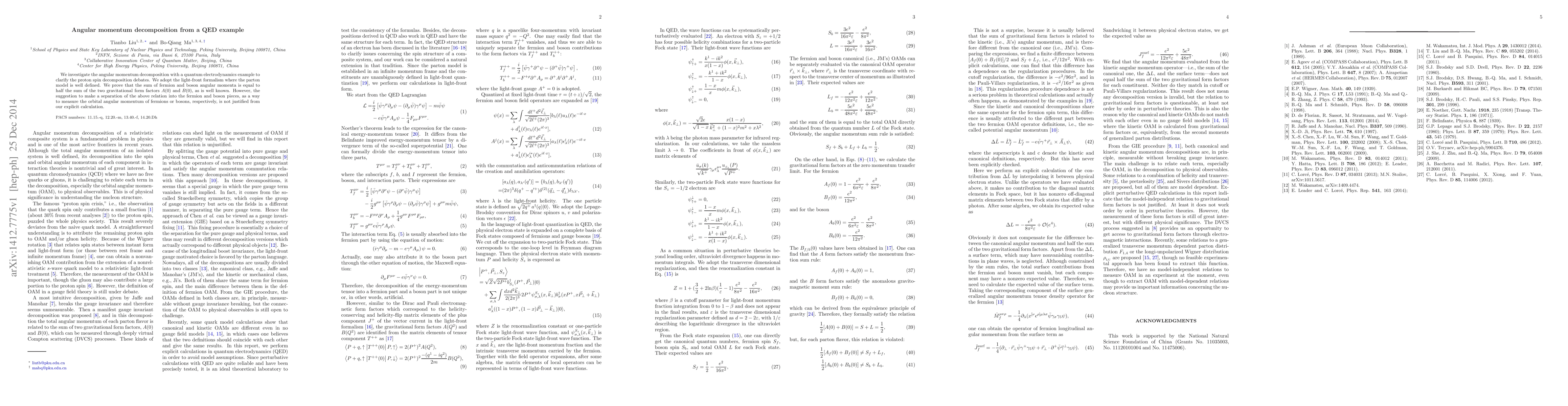 This paper uses quantum electrodynamics and the light-front formalism to analyze angular momentum decomposition, clarifying debates on proton spin. It finds that while the total angular momentum is linked to gravitational form factors, separating this relation into fermion and boson components to measure orbital angular momentum is unjustified.