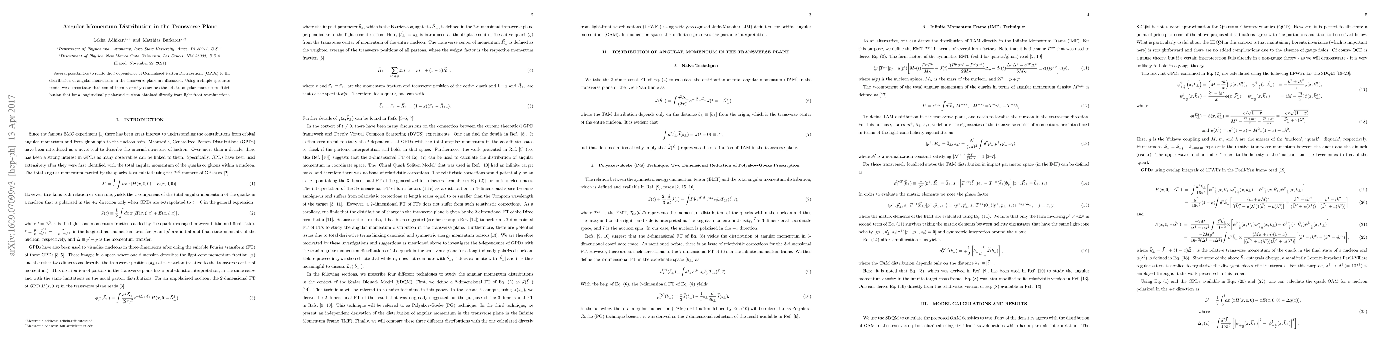 This paper explores methods to link the $t$-dependence of Generalized Parton Distributions (GPDs) to angular momentum in the transverse plane, concluding that none of the proposed methods accurately describe the orbital angular momentum distribution derived from light-front wavefunctions for a longitudinally polarized nucleon.