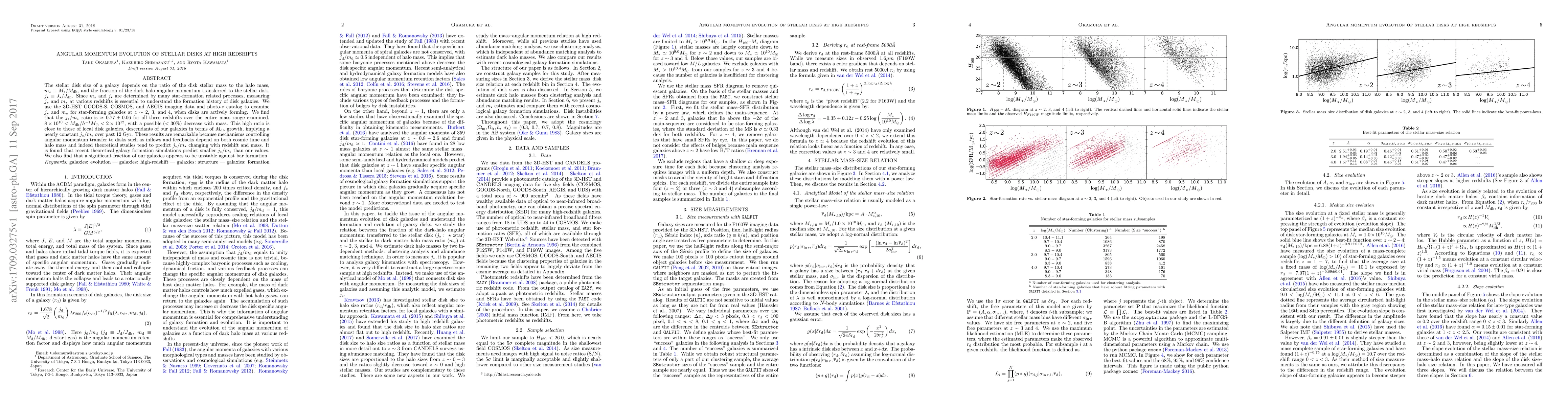 The stellar disk size of a galaxy depends on the ratio of the disk stellar mass to the halo mass, $m_\star \equiv M_\star/M_{\rm dh}$, and the fraction of the dark halo angular momentum transferred to the stellar disk, $j_\star \equiv J_\star/J_{\rm dh}$. Since $m_{\star}$ and $j_{\star}$ are determined by many star-formation related processes, measuring $j_\star$ and $m_\star$ at various redshifts is essential to understand the formation history of disk galaxies. We use the 3D-HST GOODS-S, COSMOS, and AEGIS imaging data and photo-$z$ catalog to examine $j_\star$ and $m_\star$ for star-forming galaxies at $z \sim$ 2, 3, and 4, when disks are actively forming. We find that the $j_\star/m_\star$ ratio is $\simeq 0.77\pm 0.06$ for all three redshifts over the entire mass range examined, $8\times 10^{10} < M_{\rm dh}/h^{-1} M_\odot < 2\times 10^{12}$, with a possible ($<30\%$) decrease with mass. This high ratio is close to those of local disk galaxies, descendants of our galaxies in terms of $M_{\rm dh}$ growth, implying a nearly constant $j_\star/m_\star$ over past 12 Gyr. These results are remarkable because mechanisms controlling angular momentum transfer to disks such as inflows and feedbacks depend on both cosmic time and halo mass and indeed theoretical studies tend to predict $j_\star/m_\star$ changing with redshift and mass. It is found that recent theoretical galaxy formation simulations predict smaller $j_{\star}/m_{\star}$ than our values. We also find that a significant fraction of our galaxies appears to be unstable against bar formation.