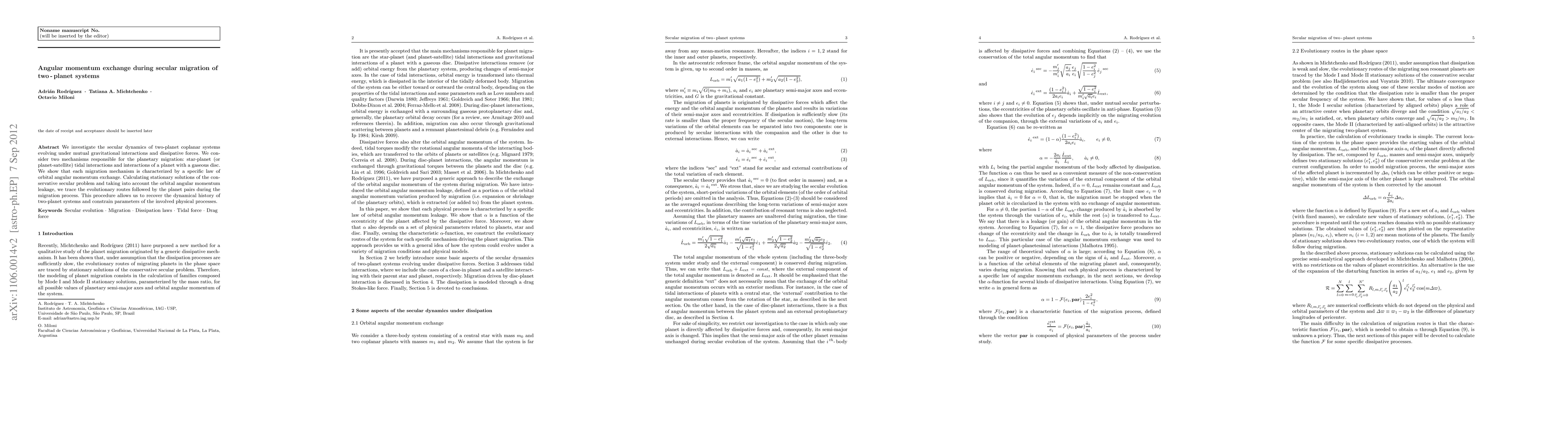 This paper studies the secular dynamics of two-planet systems, focusing on the angular momentum exchange during their migration driven by tidal interactions and gas disc interactions. It identifies distinct laws governing the angular momentum exchange for each migration mechanism and traces the evolutionary paths of the planet pairs.