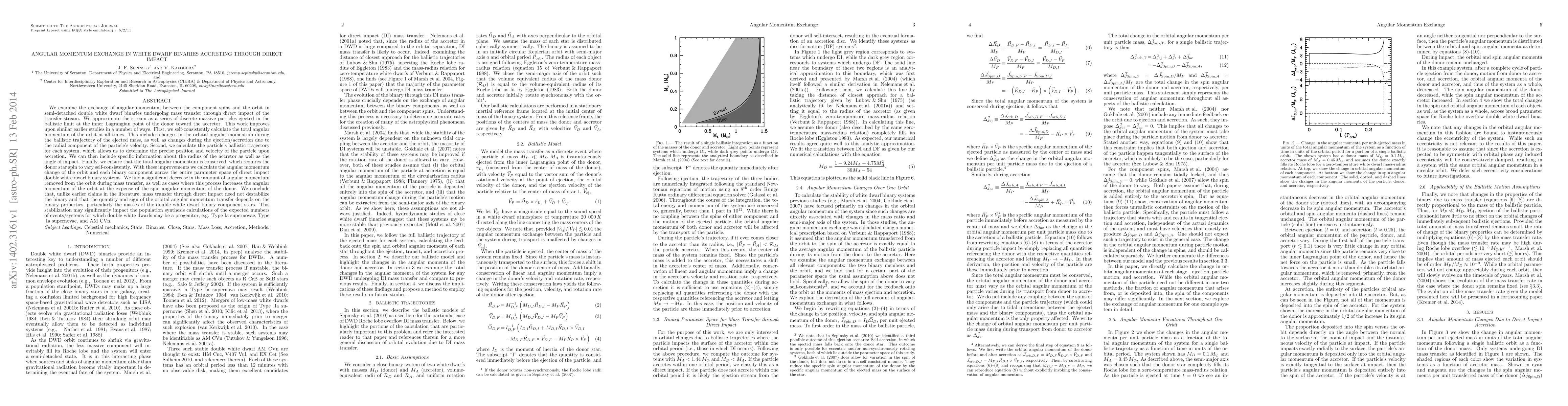 We examine the exchange of angular momentum between the component spins and the orbit in semi-detached double white dwarf binaries undergoing mass transfer through direct impact of the transfer stream. We approximate the stream as a series of discrete massive particles ejected in the ballistic limit at the inner Lagrangian point of the donor toward the accretor. This work improves upon similar earlier studies in a number of ways. First, we self-consistently calculate the total angular momentum of the orbit at all times. This includes changes in the orbital angular momentum during the ballistic trajectory of the ejected mass, as well as changes during the ejection/accretion due to the radial component of the particle's velocity. Second, we calculate the particle's ballistic trajectory for each system, which allows us to determine the precise position and velocity of the particle upon accretion. We can then include specific information about the radius of the accretor as well as the angle of impact. Finally, we ensure that the total angular momentum is conserved, which requires the donor star spin to vary self-consistently. We calculate the angular momentum change of the orbit and each binary component across the entire parameter space of direct impact double white dwarf binaries. We find a significant decrease in the amount of angular momentum removed from the orbit during mass transfer, as well as cases where this process increases the angular momentum of the orbit at the expense of the spin angular momentum of the donor. We conclude that, unlike earlier claims in the literature, mass transfer through direct impact need not destabilize the binary and that the quantity and sign of the orbital angular momentum transfer depends on the binary properties. This stabilization may significantly impact the population synthesis calculations of double white dwarf progenitors.