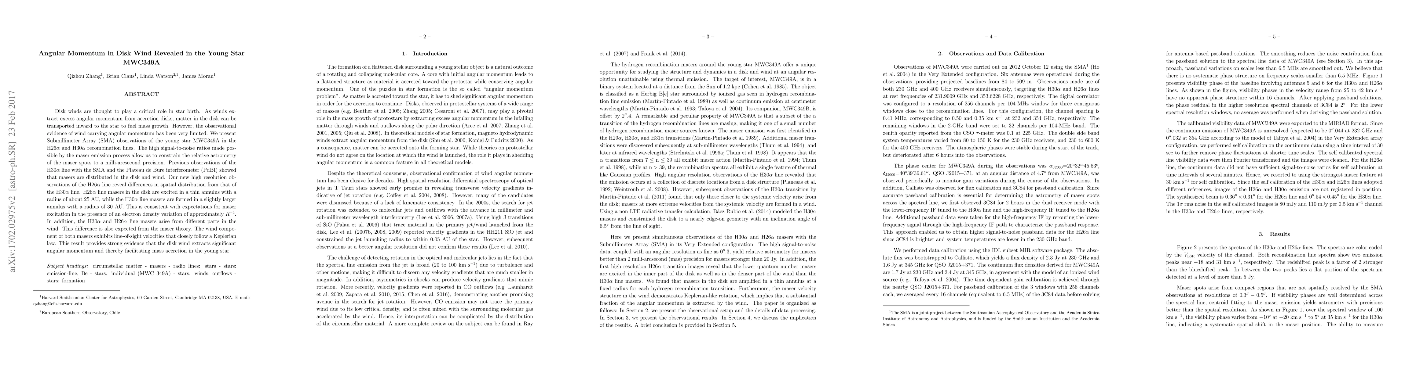 The study, using Submillimeter Array observations of MWC349A, reveals distinct spatial distributions of H26α and H30α maser lines. H26α masers are in a 25 AU thin annulus, while H30α masers are in a 30 AU slightly larger annulus, indicating electron density variation. Both lines' wind components follow Keplerian velocities, providing strong evidence that disk winds extract significant angular momentum, aiding mass accretion in young stars.
