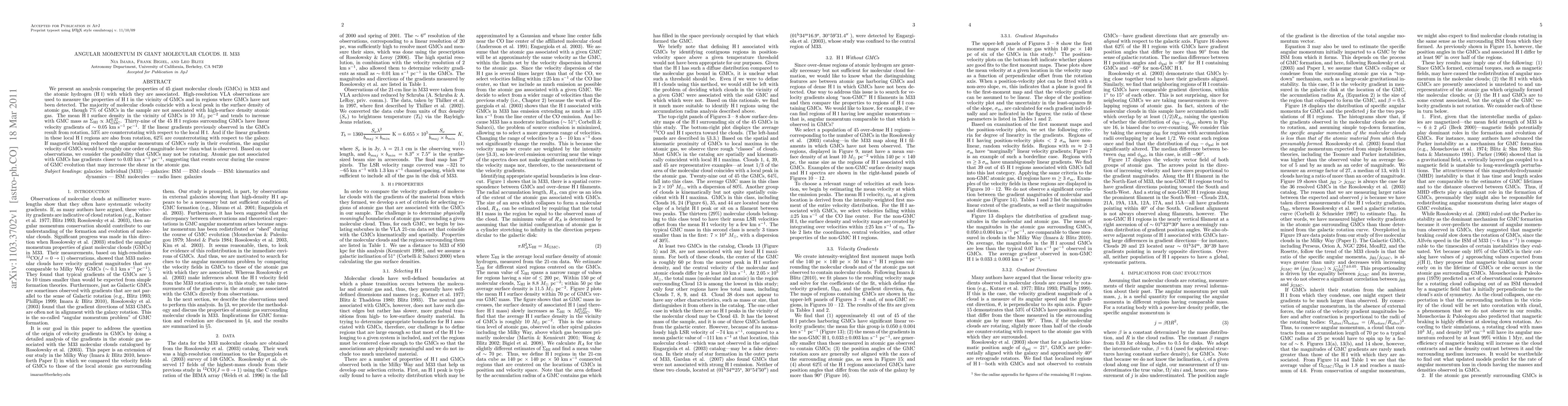 The paper presents detailed analysis of HI and GMC properties in M33, including velocity gradients and surface density relationships.