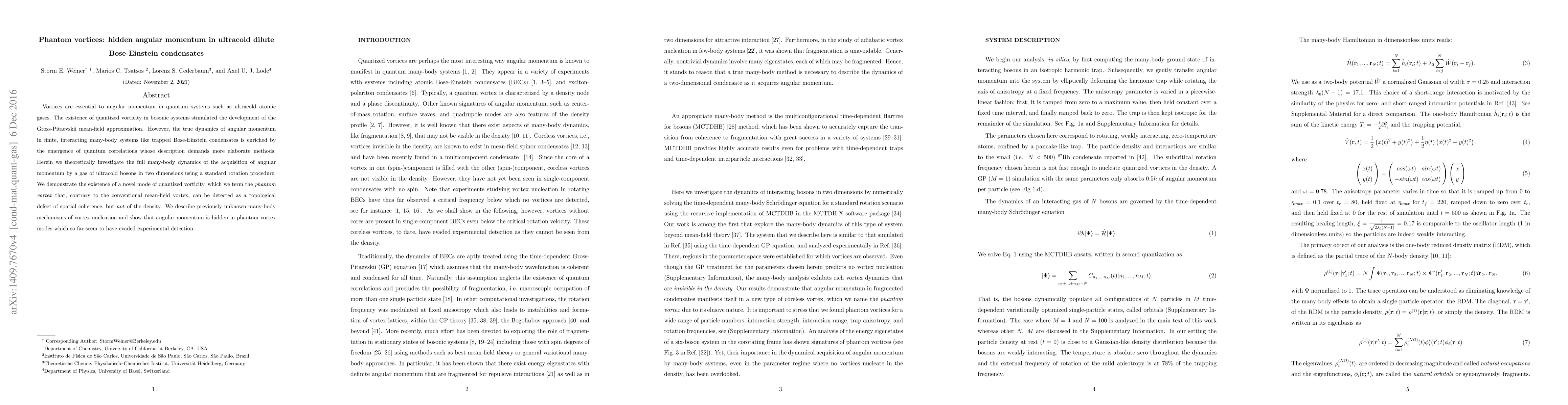 This paper investigates the angular momentum dynamics in interacting many-body systems, revealing the existence of "phantom vortices" that are topological defects of spatial coherence but not density. These phantom vortices hide angular momentum mechanisms that differ from conventional mean-field vortices.