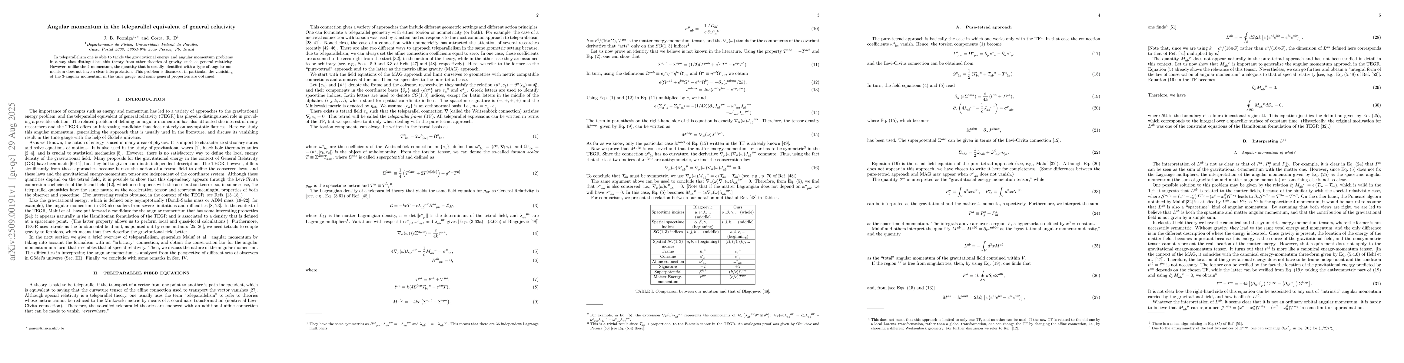 In teleparallelism one is able to tackle the gravitational energy and angular momentum problems in a way that distinguishes this theory from other theories of gravity, such as general relativity. However, unlike the $4$-momentum, the quantity that is usually identified with a type of angular momentum does not have a clear interpretation. This problem is discussed, in particular the vanishing of the $3$-angular momentum in the time gauge, and some general properties are obtained.