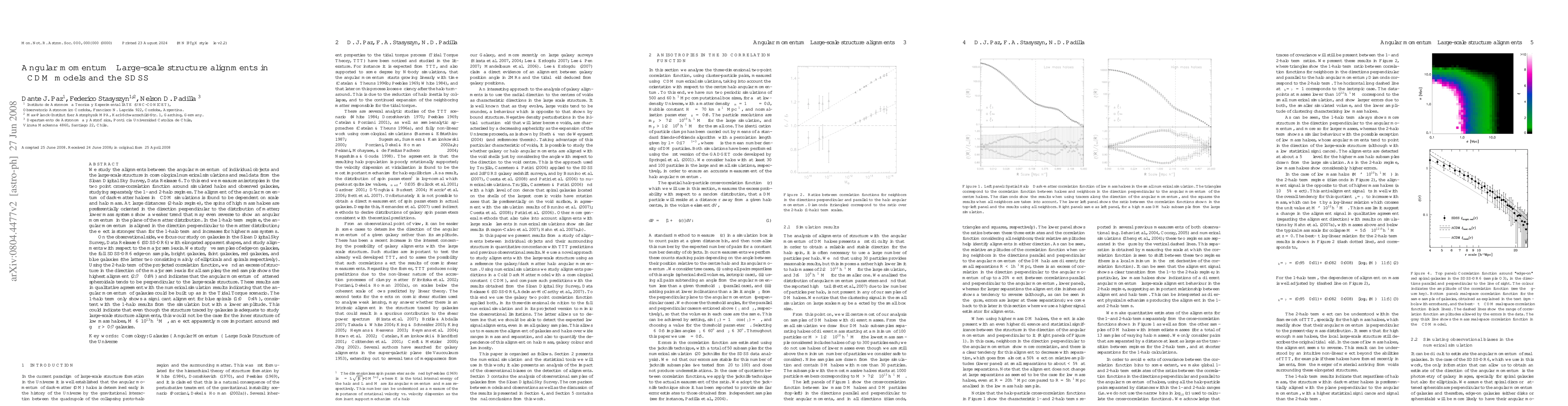 This paper investigates alignments between the angular momentum of objects and the large-scale structure in LCDM models and SDSS data. In simulations, high-mass dark-matter halos show angular momentum perpendicular to matter distribution at large scales, while lower-mass systems show weaker or opposite alignments. SDSS observations reveal an excess of structure aligned with the major axis of flattened galaxies, indicating a perpendicular alignment of angular momentum with large-scale structure.