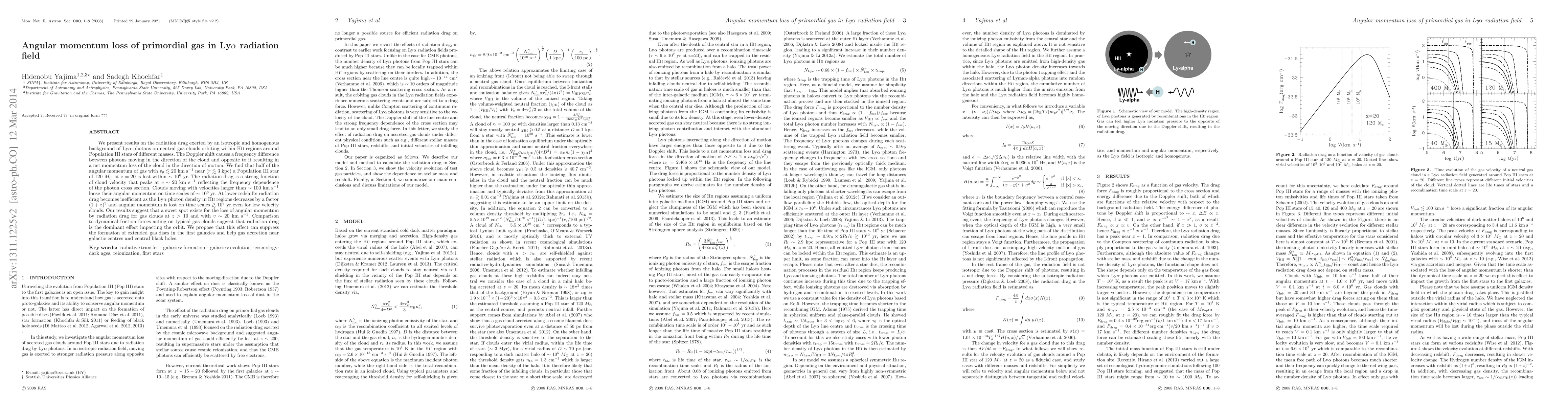 We present results on the radiation drag exerted by an isotropic and homogenous background of Lya photons on neutral gas clouds orbiting within HII regions around Population III stars of different masses. The Doppler shift causes a frequency difference between photons moving in the direction of the cloud and opposite to it resulting in a net momentum loss of the cloud in the direction of motion. We find that half of the angular momentum of gas with v_theta <~ 20 km/s near (r <~ 3 kpc) a Population III star of 120 Msun at z=20 is lost within ~ 10^6 yr. The radiation drag is a strong function of cloud velocity that peaks at v ~ 20 km/s reflecting the frequency dependence of the photon cross section. Clouds moving with velocities larger than ~ 100 km/s loose their angular momentum on time scales of ~ 10^8 yr. At lower redshifts radiation drag becomes inefficient as the Lya photon density in HII regions decreases by a factor (1+z)^3 and angular momentum is lost on time scales > 10^8 yr even for low velocity clouds. Our results suggest that a sweet spot exists for the loss of angular momentum by radiation drag for gas clouds at z > 10 and with v ~ 20 km/s. Comparison to dynamical friction forces acting on typical gas clouds suggest that radiation drag is the dominant effect impacting the orbit. We propose that this effect can suppress the formation of extended gas discs in the first galaxies and help gas accretion near galactic centres and central black holes.