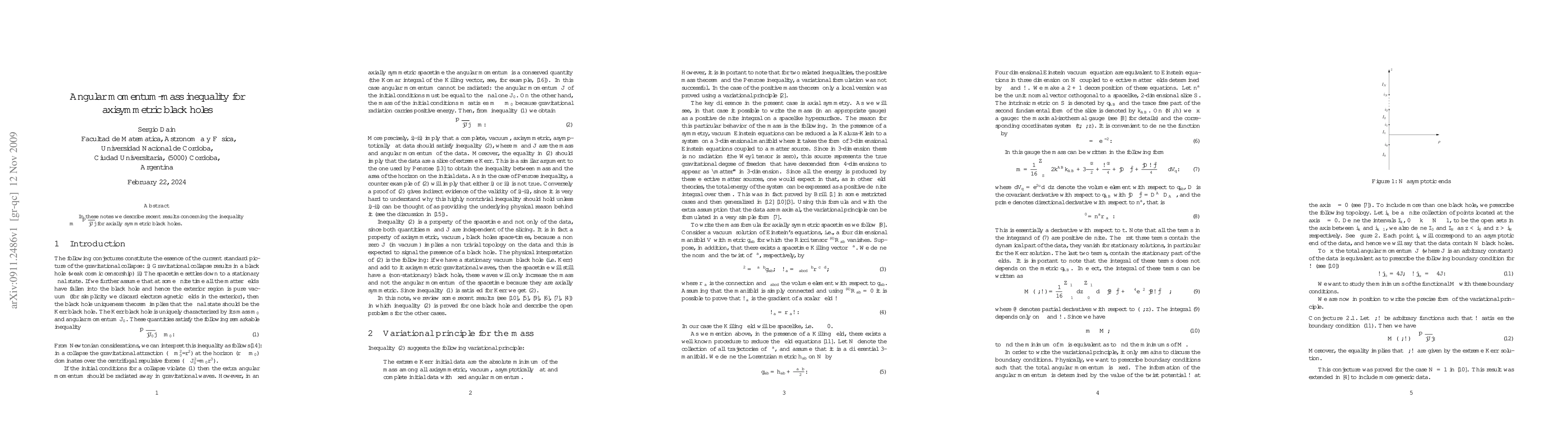In these notes we describe recent results concerning the inequality $m\geq \sqrt{|J|}$ for axially symmetric black holes.