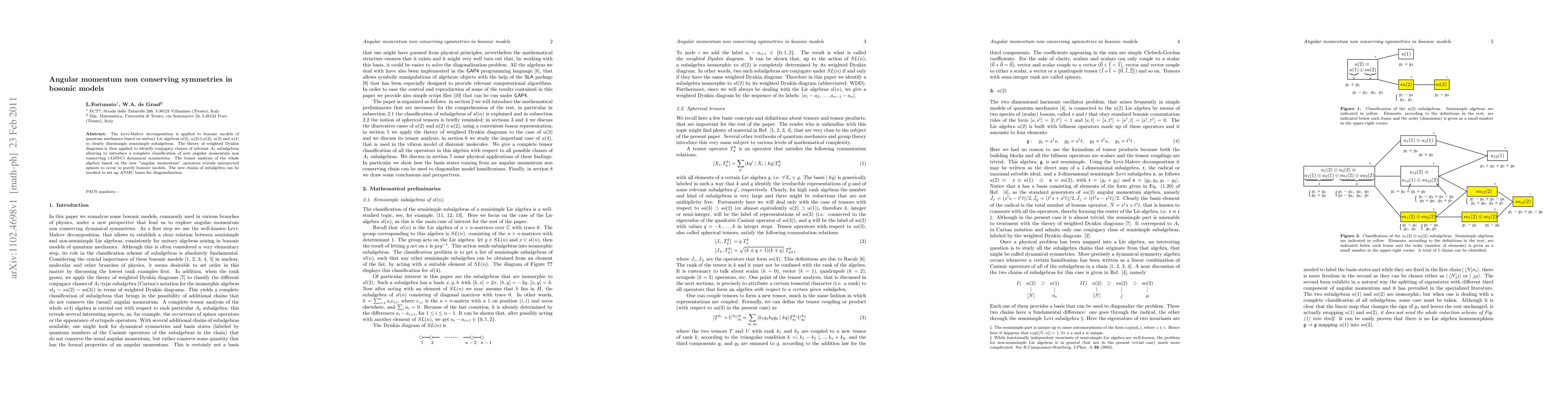 This paper applies the Levi-Malcev decomposition to bosonic quantum models based on unitary Lie algebras to classify angular momentum non-conserving symmetries. It identifies new dynamical symmetries using weighted Dynkin diagrams and reveals unexpected spinors in purely bosonic systems, providing new subalgebra chains for AMNC basis diagonalization.