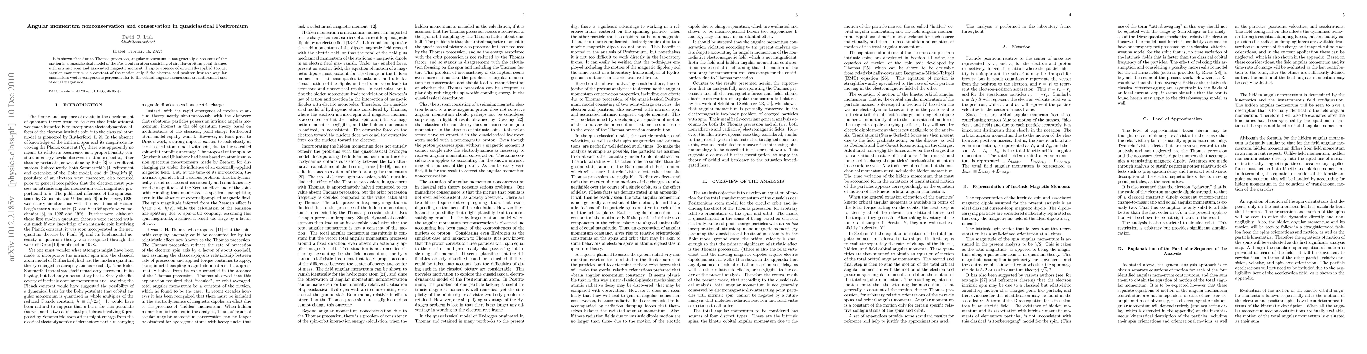 It is shown that due to Thomas precession, angular momentum is not generally a constant of the motion in a quasiclassical model of the Positronium atom consisting of circular-orbiting point charges with intrinsic spin and associated magnetic moment. Despite absence of externally-applied torque, angular momentum is a constant of the motion only if the electron and positron intrinsic angular momentum vector components perpendicular to the orbital angular momentum are antiparallel and of equal magnitude.