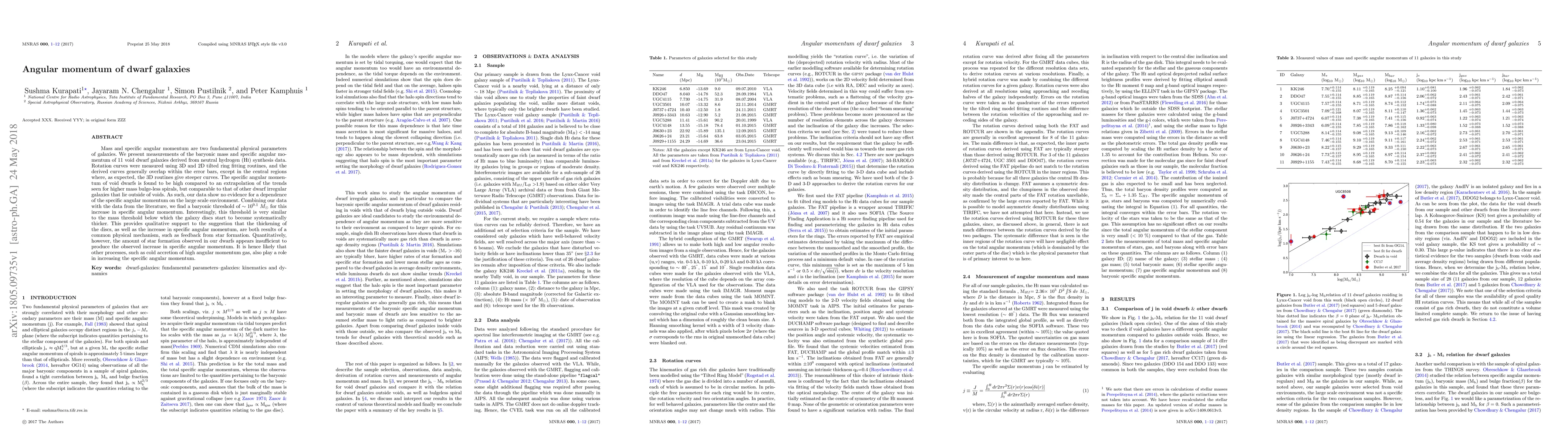 Mass and specific angular momentum are two fundamental physical parameters of galaxies. We present measurements of the baryonic mass and specific angular momentum of 11 void dwarf galaxies derived from neutral hydrogen (H{\sc i}) synthesis data. Rotation curves were measured using 3D and 2D tilted ring fitting routines, and the derived curves generally overlap within the error bars, except in the central regions where, as expected, the 3D routines give steeper curves. The specific angular momentum of void dwarfs is found to be high compared to an extrapolation of the trends seen for higher mass bulge-less spirals, but comparable to that of other dwarf irregular galaxies that lie outside of voids. As such, our data show no evidence for a dependence of the specific angular momentum on the large scale environment. Combining our data with the data from the literature, we find a baryonic threshold of $\sim 10^{9.1}~M_{\odot}$ for this increase in specific angular momentum. Interestingly, this threshold is very similar to the mass threshold below which the galaxy discs start to become systematically thicker. This provides qualitative support to the suggestion that the thickening of the discs, as well as the increase in specific angular momentum, are both results of a common physical mechanism, such as feedback from star formation. Quantitatively, however, the amount of star formation observed in our dwarfs appears insufficient to produce the observed increase in specific angular momentum. It is hence likely that other processes, such as cold accretion of high angular momentum gas, also play a role in increasing the specific angular momentum.