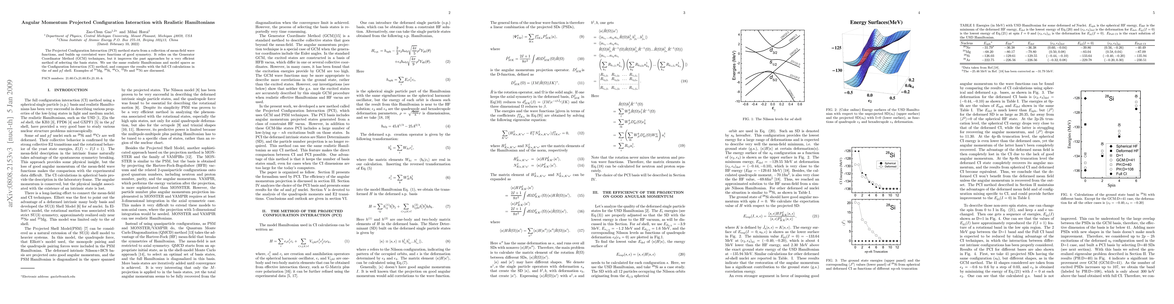 The Projected Configuration Interaction (PCI) method enhances the Generator Coordinator Method (GCM) by efficiently selecting basis states, yielding correlated wave functions of good symmetry. It uses realistic Hamiltonians and model spaces comparable to Configuration Interaction (CI), demonstrating accuracy through comparisons with full CI calculations in sd and pf shell examples like 24Mg, 28Si, 48Cr, 52Fe, and 56Ni.