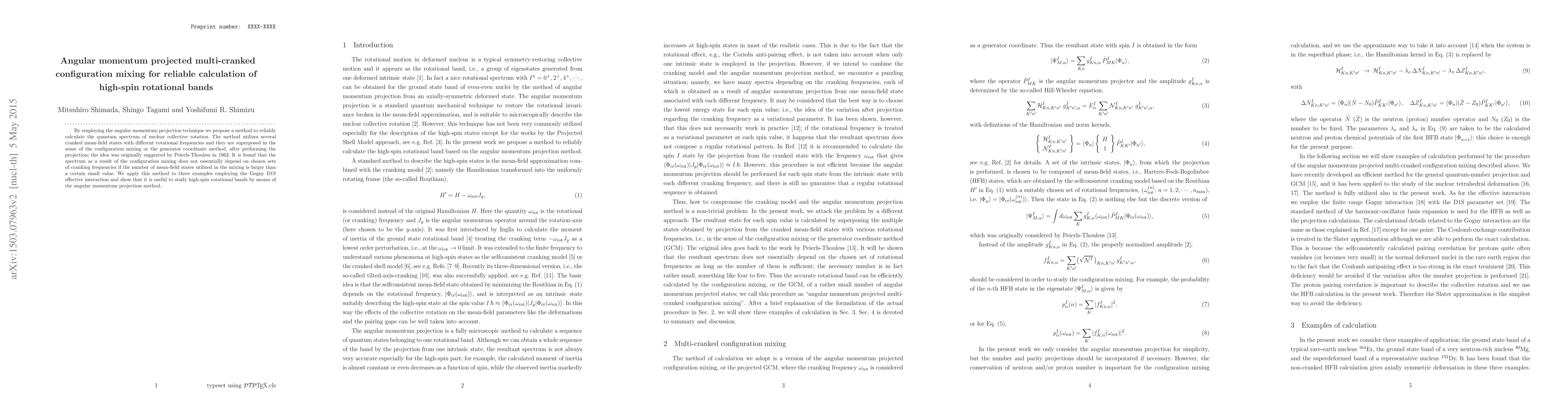 By employing the angular momentum projection technique we propose a method to reliably calculate the quantum spectrum of nuclear collective rotation. The method utilizes several cranked mean-field states with different rotational frequencies and they are superposed in the sense of the configuration mixing or the generator coordinate method, after performing the projection; the idea was originally suggested by Peierls-Thouless in 1962. It is found that the spectrum as a result of the configuration mixing does not essentially depend on chosen sets of cranking frequencies if the number of mean-field states utilized in the mixing is larger than a certain small value. We apply this method to three examples employing the Gogny D1S effective interaction and show that it is useful to study high-spin rotational bands by means of the angular momentum projection method.