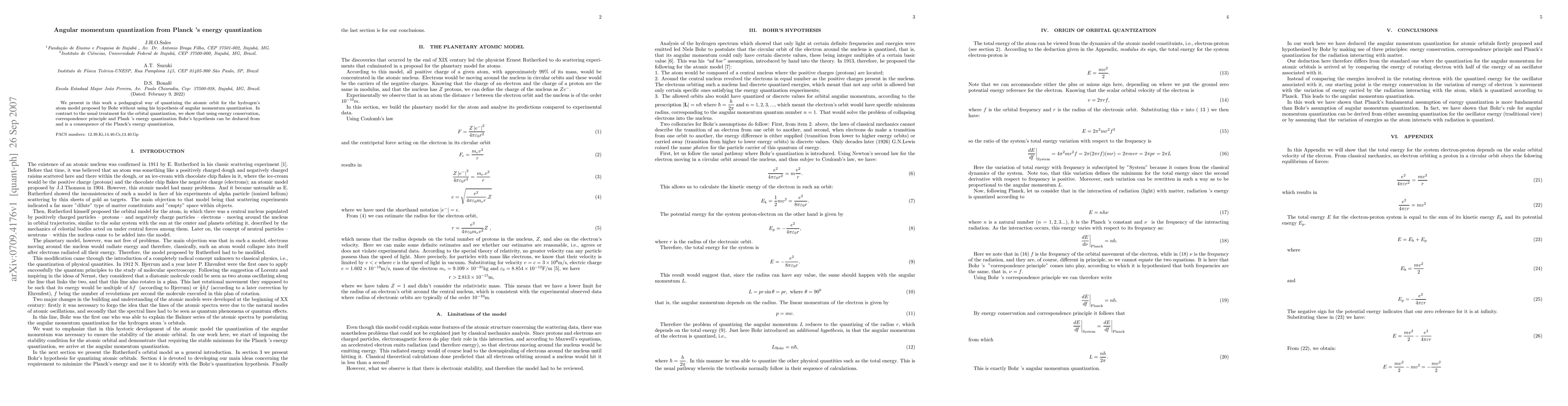 We present in this work a pedagogical way of quantizing the atomic orbit for the hydrogen's atom model proposed by Bohr without using his hypothesis of angular momentum quantization. In contrast to the usual treatment for the orbital quantization, we show that using energy conservation, correspondence principle and Plank's energy quantization Bohr's hypothesis can be deduced from and is a consequence of the Planck's energy quantization.