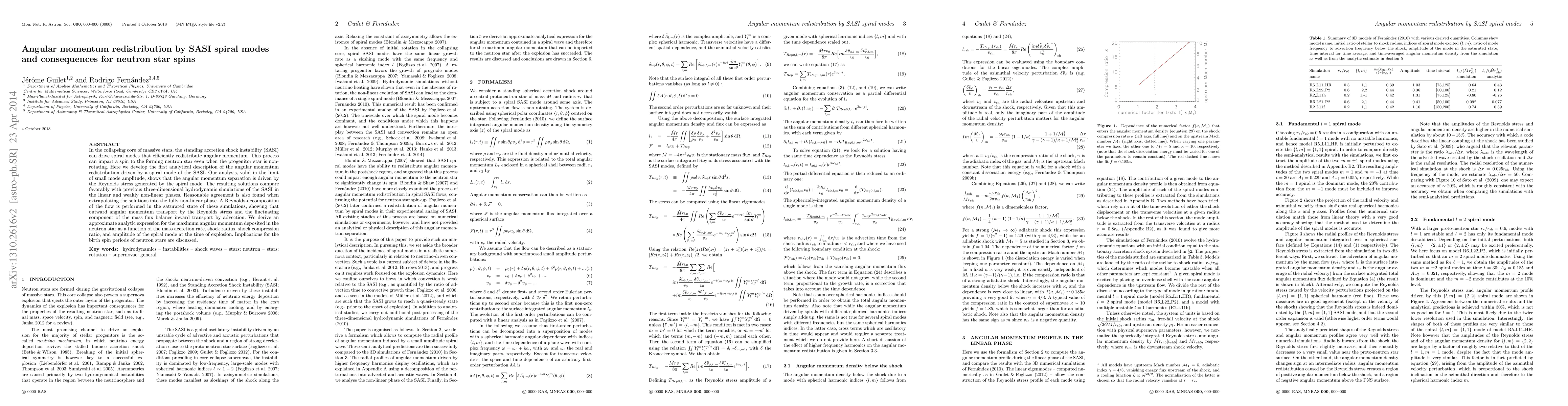 This paper develops an analytical model for angular momentum redistribution by SASI spiral modes in collapsing massive stars, showing that these modes can impart spin to forming neutron stars. The model predicts the maximum angular momentum deposited based on several key parameters, with implications for neutron star birth spin periods.