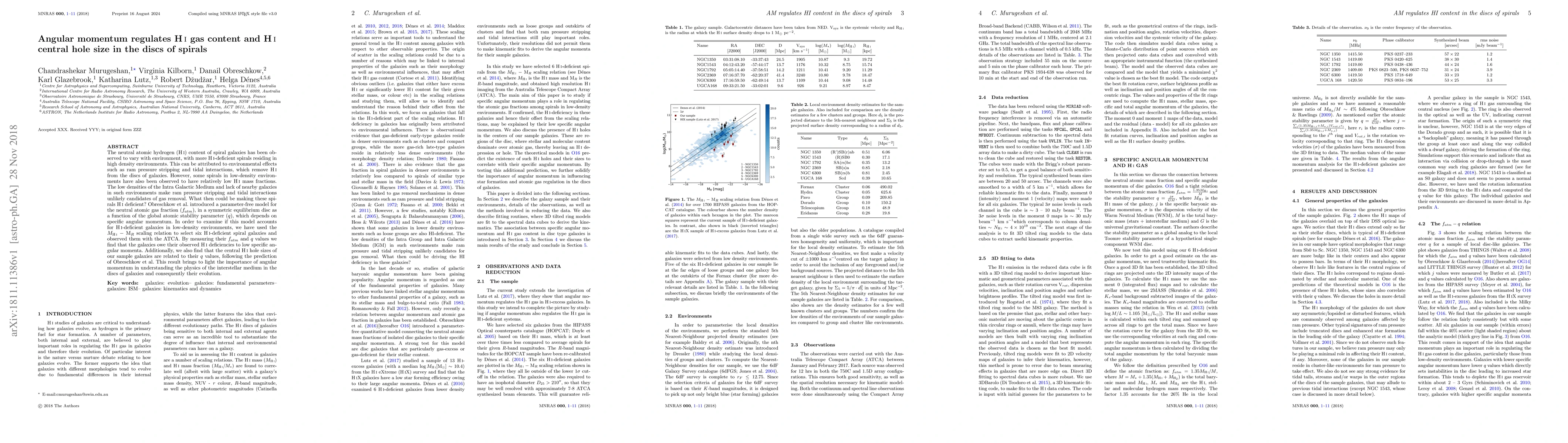 This study investigates the role of angular momentum in regulating the neutral atomic hydrogen (HI) content and central HI hole size in spiral galaxies, finding that low specific angular momentum correlates with HI deficiencies and larger central HI holes, supporting a model that links these properties to the global atomic stability parameter.