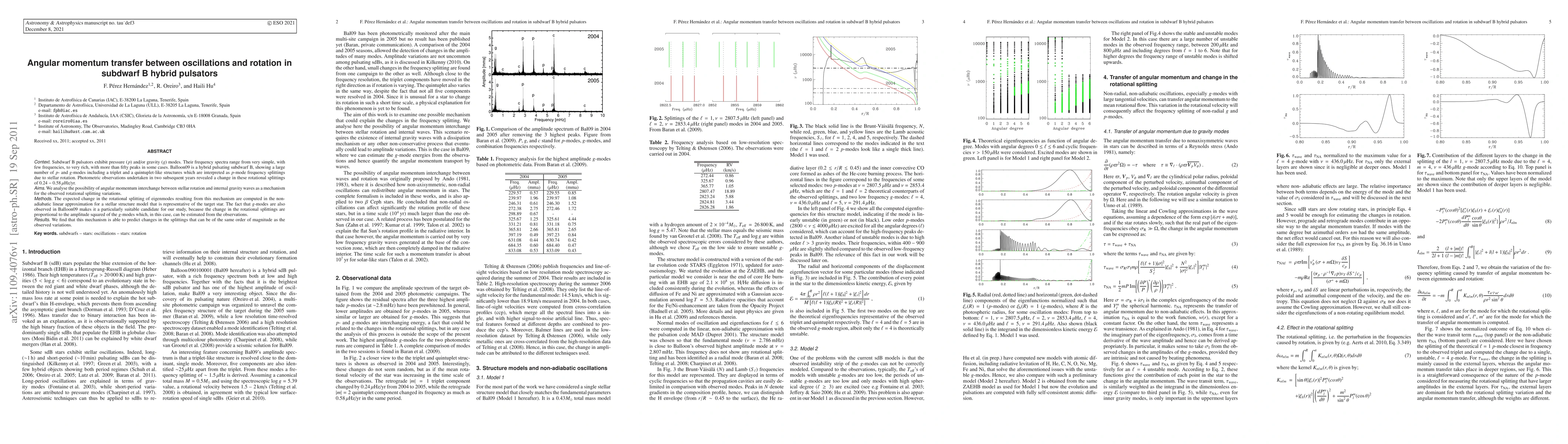 This research investigates the variation in rotational splitting of frequencies in subdwarf B hybrid pulsator Balloon09. Using a stellar structure model and nonadiabatic linear approximation, the study finds that angular momentum interchange between stellar rotation and internal gravity waves can explain observed changes in rotational splittings, matching the observed variations in magnitude.
