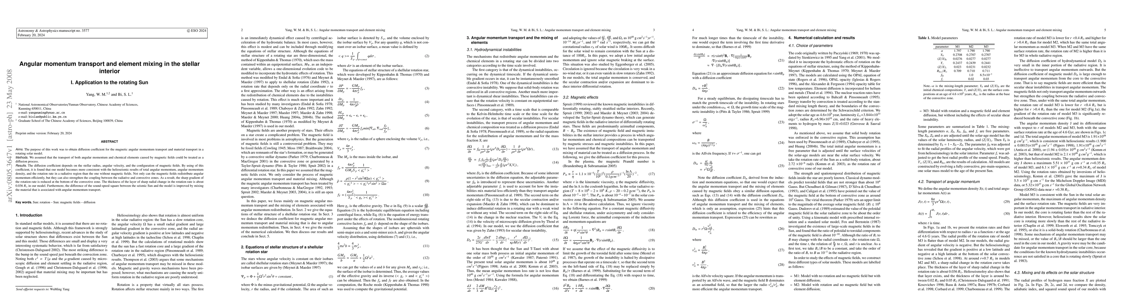 The purpose of this work was to obtain diffusion coefficient for the magnetic angular momentum transport and material transport in a rotating solar model. We assumed that the transport of both angular momentum and chemical elements caused by magnetic fields could be treated as a diffusion process. The diffusion coefficient depends on the stellar radius, angular velocity, and the configuration of magnetic fields. By using of this coefficient, it is found that our model becomes more consistent with the helioseismic results of total angular momentum, angular momentum density, and the rotation rate in a radiative region than the one without magnetic fields. Not only can the magnetic fields redistribute angular momentum efficiently, but they can also strengthen the coupling between the radiative and convective zones. As a result, the sharp gradient of the rotation rate is reduced at the bottom of the convective zone. The thickness of the layer of sharp radial change in the rotation rate is about 0.036 $R_{\odot}$ in our model. Furthermore, the difference of the sound-speed square between the seismic Sun and the model is improved by mixing the material that is associated with angular momentum transport.