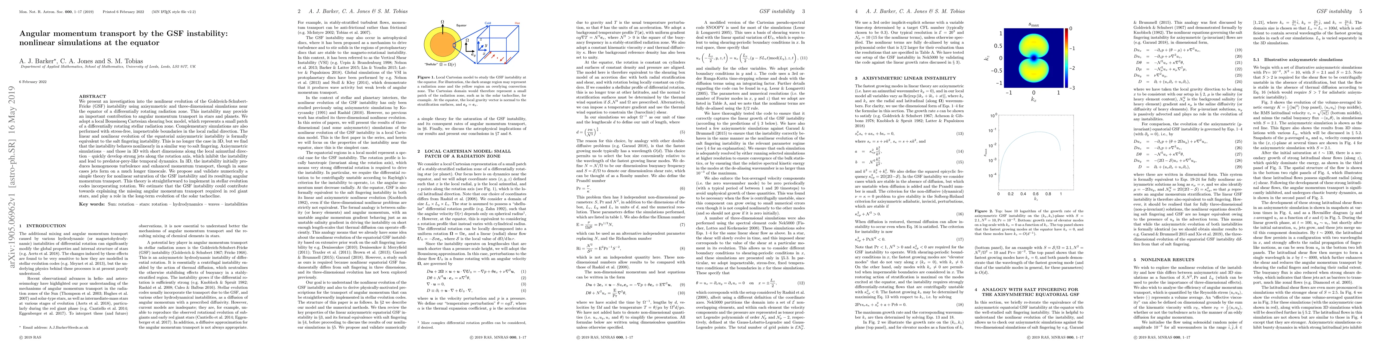 This paper investigates the nonlinear evolution of the GSF instability in differentially rotating stellar radiation zones using simulations, finding that it contributes significantly to angular momentum transport. The study proposes a simple theory for the instability's saturation and its effects, suggesting it may explain the missing angular momentum transport in red giant stars and influence solar tachocline evolution.