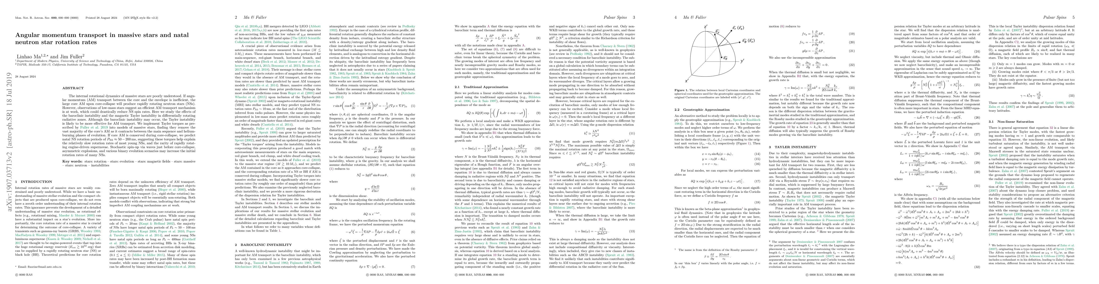 This paper investigates angular momentum transport mechanisms in massive stars, finding that magnetic Tayler instabilities are likely effective in redistributing angular momentum, leading to slower natal neutron star rotation rates of $P_{\rm NS} \approx 50-200 \, {\rm ms}$. This helps explain the observed rarity of rapidly rotating neutron stars.