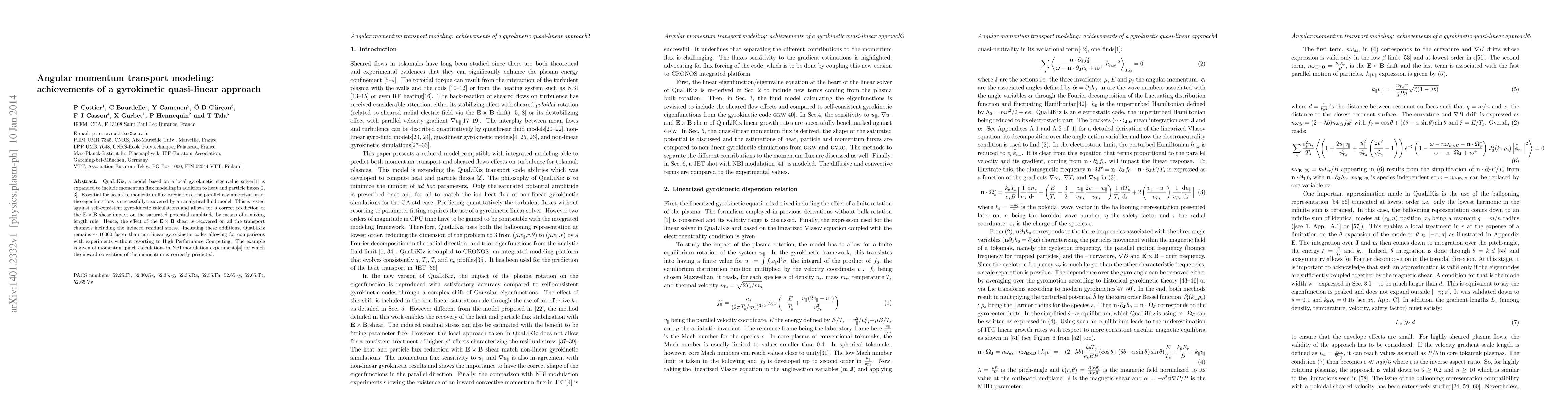 A new model called QuaLiKiz improves momentum flux predictions in plasma simulations by using a gyrokinetic quasi-linear approach, allowing for faster calculations than previous methods.