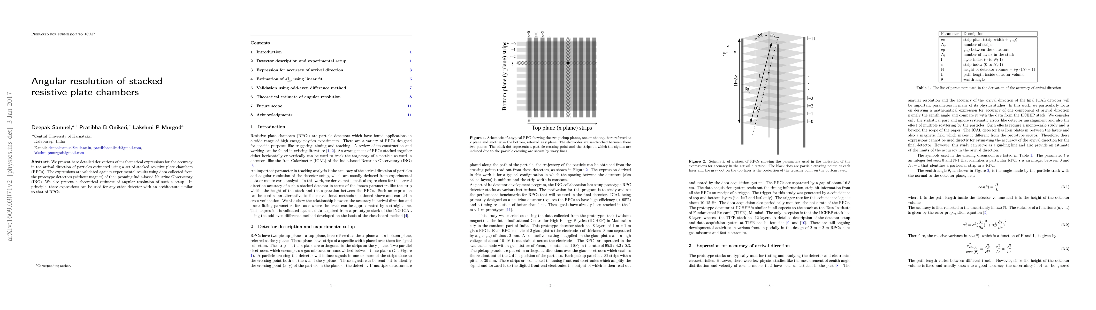 Researchers developed mathematical expressions for the accuracy of particle arrival direction estimates using stacked resistive plate chambers, validating them with experimental data from the India-based Neutrino Observatory.