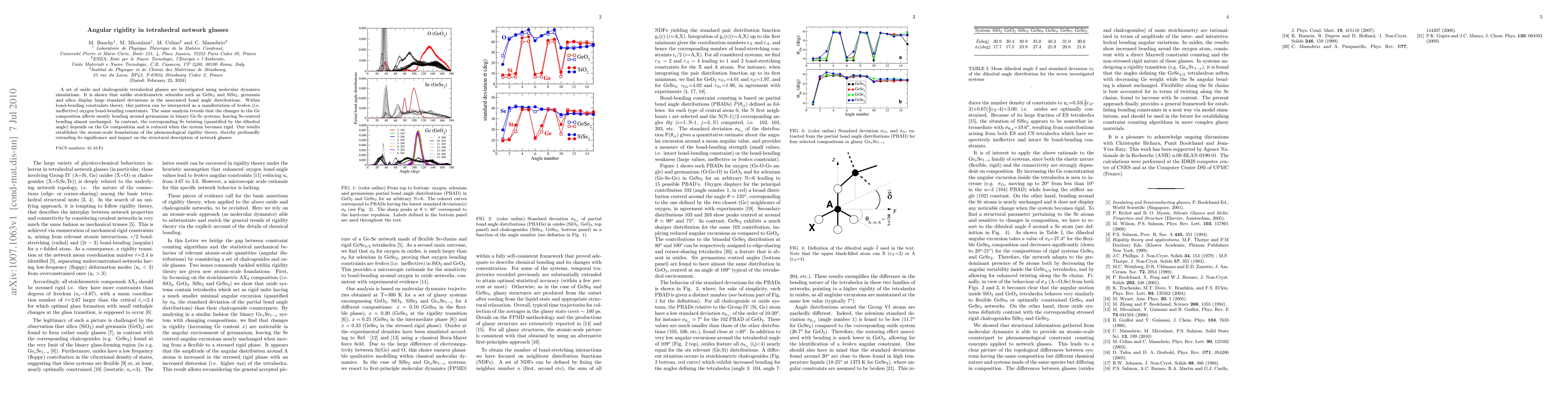Research using molecular dynamics simulations reveals that some tetrahedral glasses exhibit angular rigidity, which is linked to ineffective oxygen bond-bending constraints in germania and silica. This discovery establishes the atomic-scale foundations of a phenomenological theory and expands its impact on understanding network glasses.