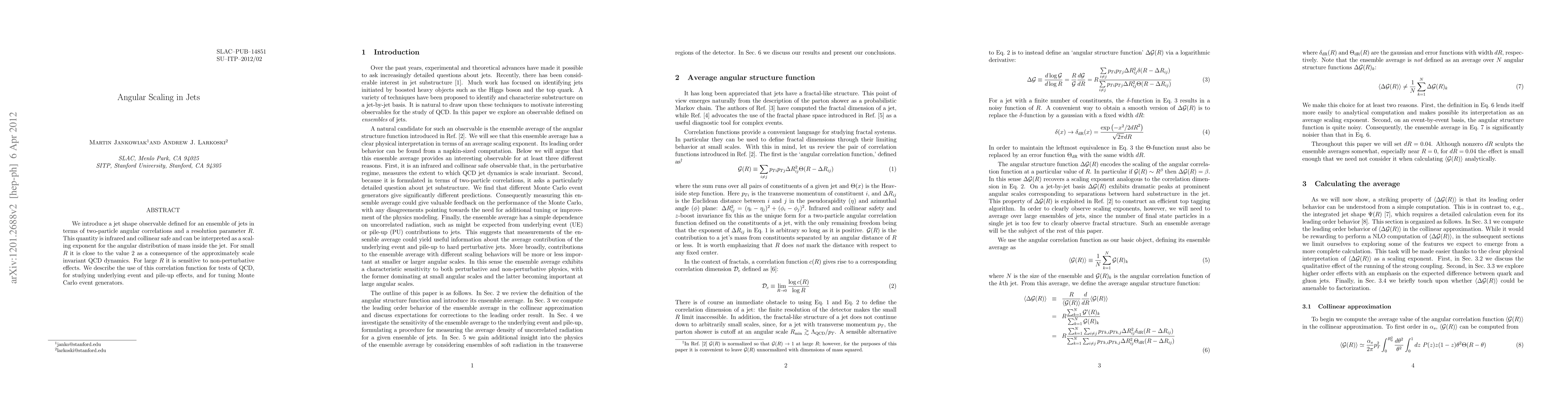 This paper introduces a new jet shape observable based on angular scaling and two-particle correlations, which is useful for testing QCD dynamics, studying event backgrounds, and tuning Monte Carlo simulations. The observable shows scale invariance for small resolutions and sensitivity to non-perturbative effects for larger resolutions.
