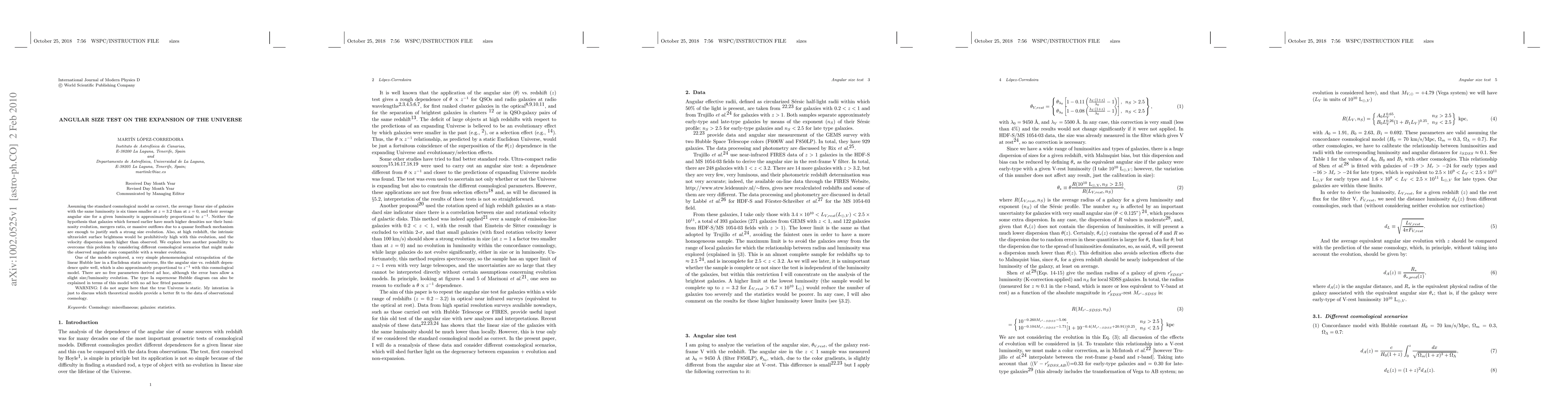 Assuming the standard cosmological model as correct, the average linear size of galaxies with the same luminosity is six times smaller at z=3.2 than at z=0, and their average angular size for a given luminosity is approximately proportional to 1/z. Neither the hypothesis that galaxies which formed earlier have much higher densities nor their luminosity evolution, mergers ratio, or massive outflows due to a quasar feedback mechanism are enough to justify such a strong size evolution. Also, at high redshift, the intrinsic ultraviolet surface brightness would be prohibitively high with this evolution, and the velocity dispersion much higher than observed. We explore here another possibility to overcome this problem by considering different cosmological scenarios that might make the observed angular sizes compatible with a weaker evolution. One of the models explored, a very simple phenomenological extrapolation of the linear Hubble law in a Euclidean static universe, fits the angular size vs. redshift dependence quite well, which is also approximately proportional to 1/z with this cosmological model. There are no free parameters derived ad hoc, although the error bars allow a slight size/luminosity evolution. The type Ia supernovae Hubble diagram can also be explained in terms of this model with no ad hoc fitted parameter. WARNING: I do not argue here that the true Universe is static. My intention is just to discuss which theoretical models provide a better fit to the data of observational cosmology.