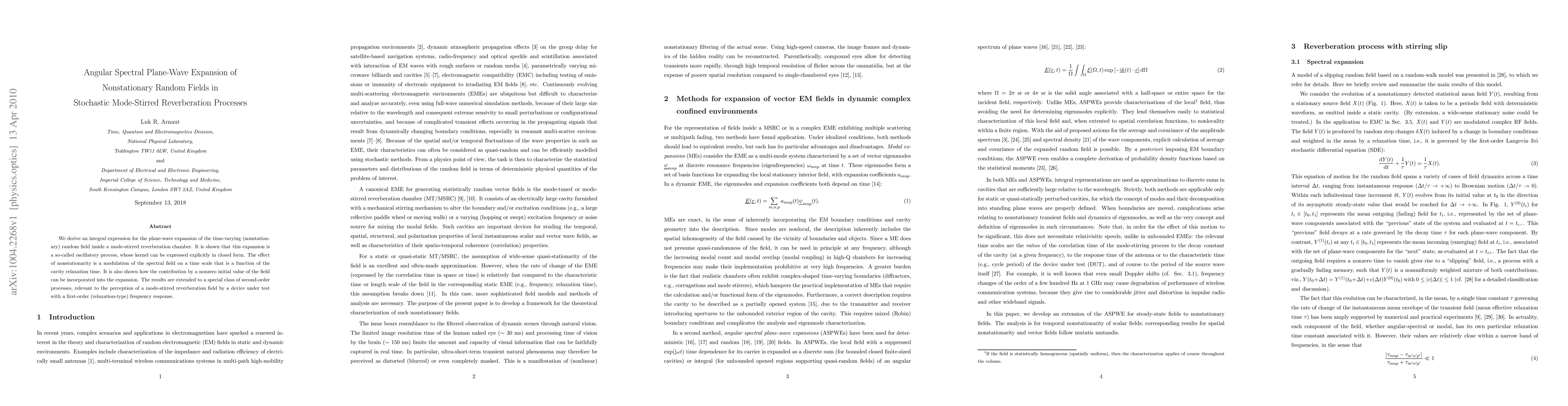 This paper derives an integral expression for the plane-wave expansion of nonstationary random fields in mode-stirred reverberation chambers, showing it as an oscillatory process with a closed-form kernel. It also addresses the modulation effect due to nonstationarity and incorporates initial field values, extending the results to second-order processes relevant for device testing.
