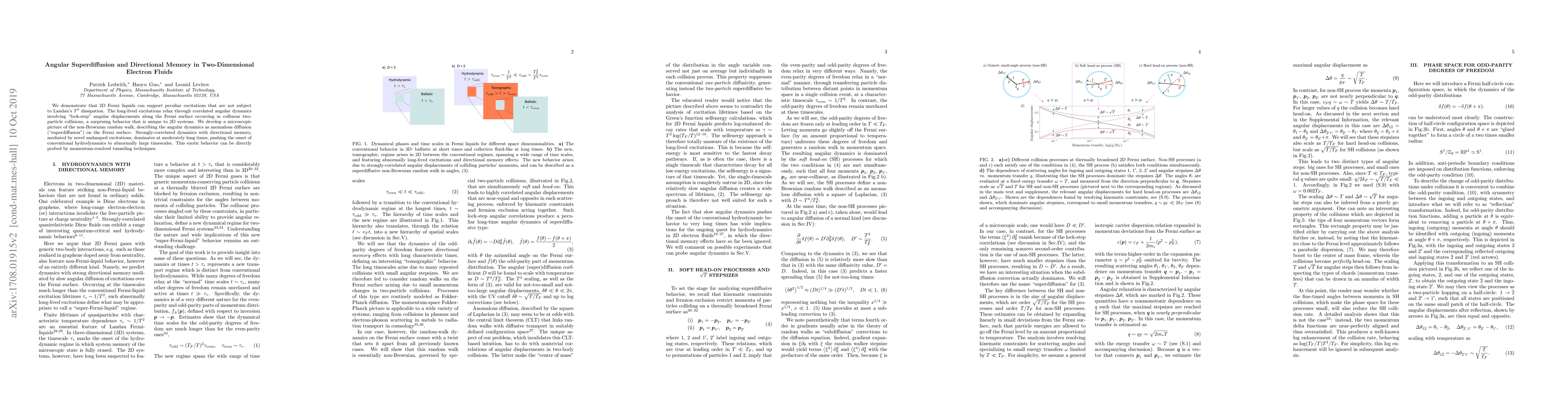 This paper reveals that 2D Fermi liquids exhibit unique angular superdiffusion and directional memory in excitations, which relax through correlated angular dynamics in two-particle collisions. This anomalous diffusion on the Fermi surface, driven by undamped excitations, delays conventional hydrodynamic behavior, observable via momentum-resolved tunneling.