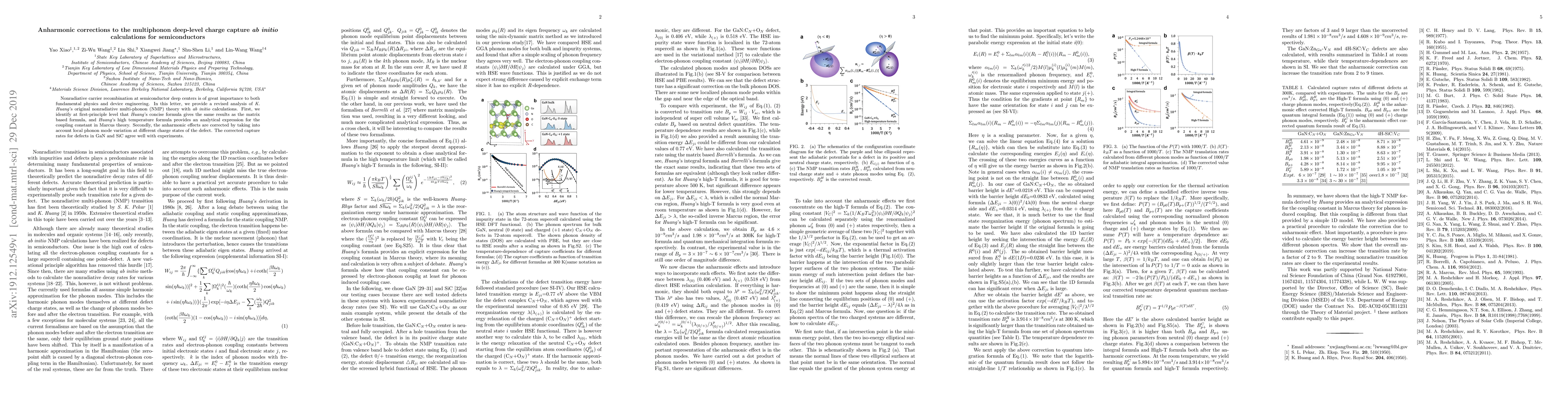 The research revises K. Huang's nonradiative multi-phonon (NMP) theory using ab initio calculations, identifying equivalence between Huang's concise formula and matrix-based formula, and correcting capture rates for defects in GaN and SiC by accounting for local phonon mode variation at different charge states.