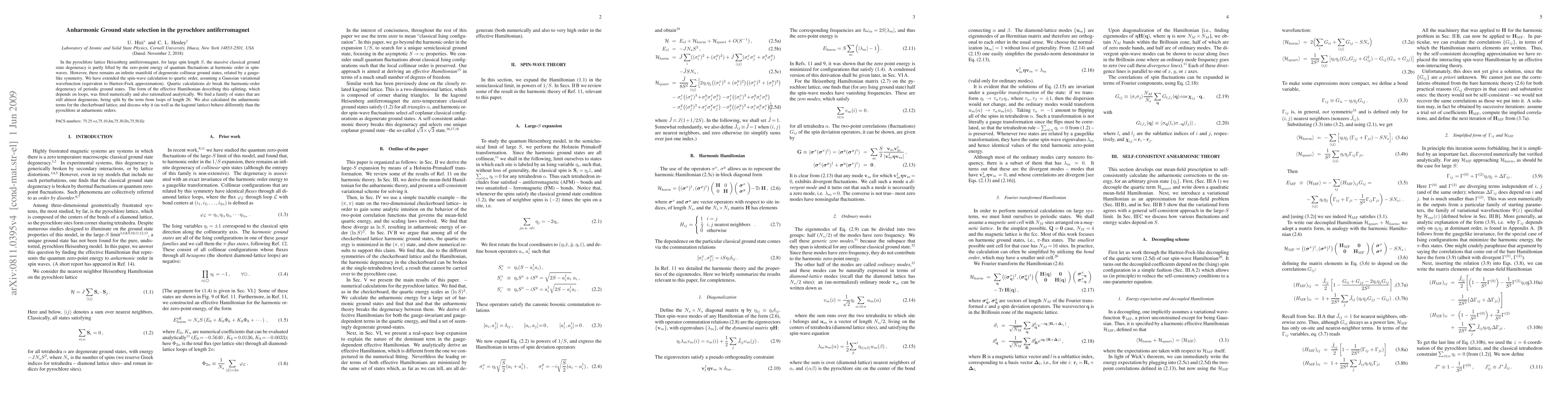 This paper investigates the ground state selection in the pyrochlore antiferromagnet, revealing that quartic spin-wave calculations break the harmonic-order degeneracy, leading to a new, anharmonic splitting of the ground states. The effective Hamiltonian is derived and rationalized, showing that states are split by loops of length 26, while the checkerboard and kagomé lattices exhibit different anharmonic behaviors.