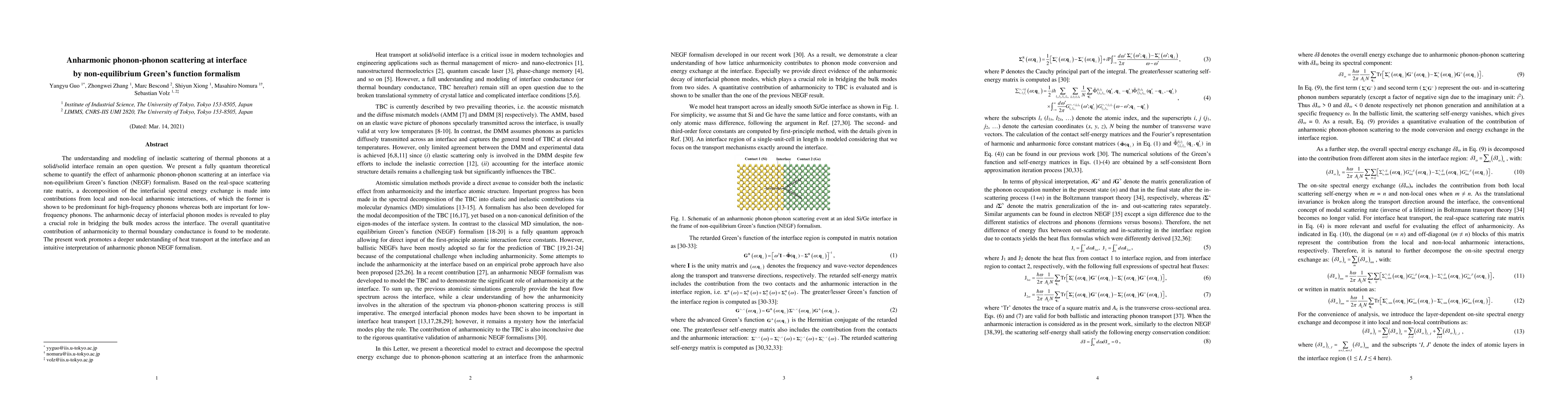This paper develops a quantum theoretical framework using non-equilibrium Green's function formalism to model the anharmonic phonon-phonon scattering at solid/solid interfaces. It reveals that local anharmonic interactions dominate high-frequency phonon scattering, while both local and non-local interactions are significant for low-frequency phonons, contributing moderately to thermal boundary conductance.