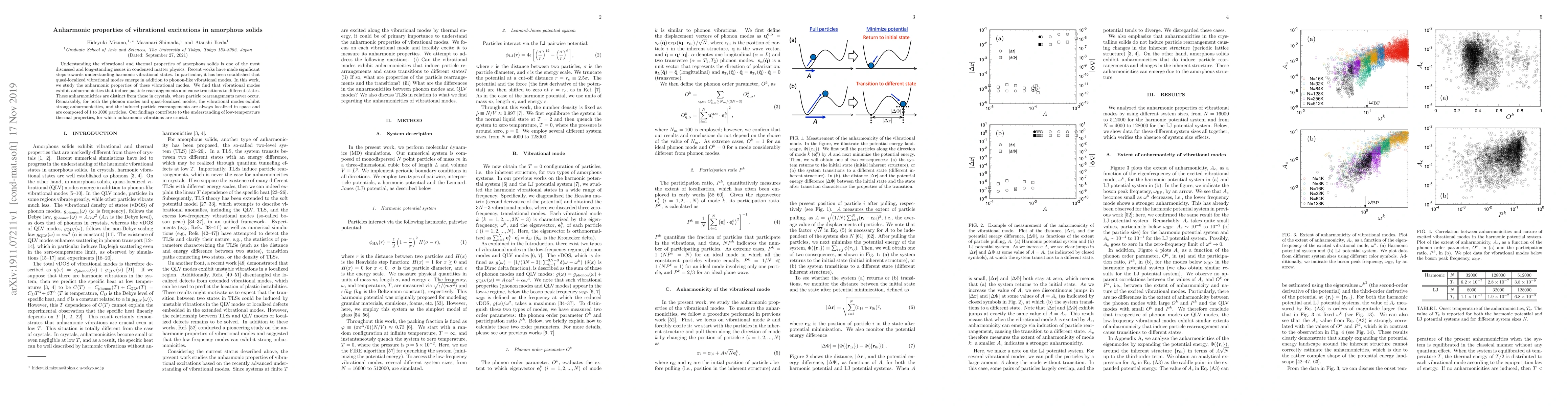 This research investigates the anharmonic properties of vibrational excitations in amorphous solids, revealing that both phonon-like and quasi-localized vibrational modes exhibit strong anharmonicities that induce localized particle rearrangements, contrasting with the behavior in crystalline materials. These findings enhance the understanding of low-temperature thermal properties in amorphous solids.